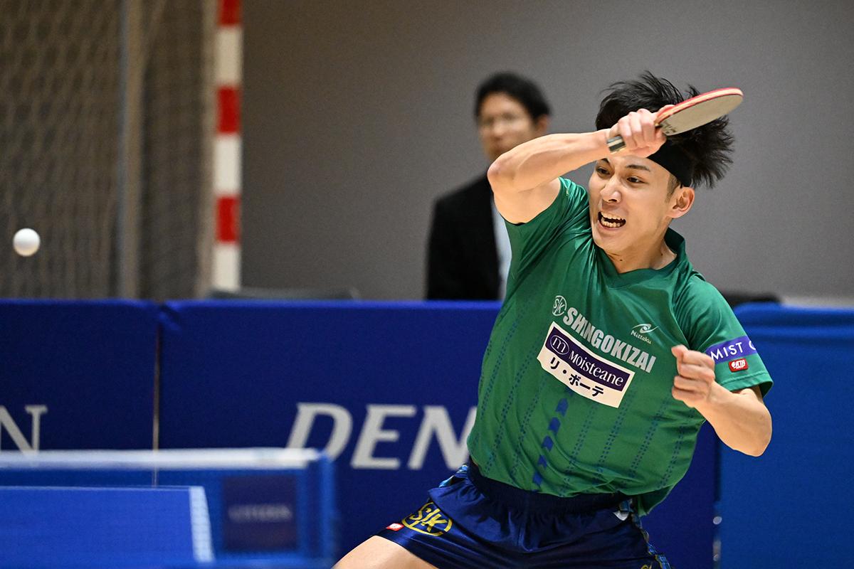 木造勇人(関西卓球アカデミー) 5,4,9 皆川朝(日野キングフィッシャーズ)