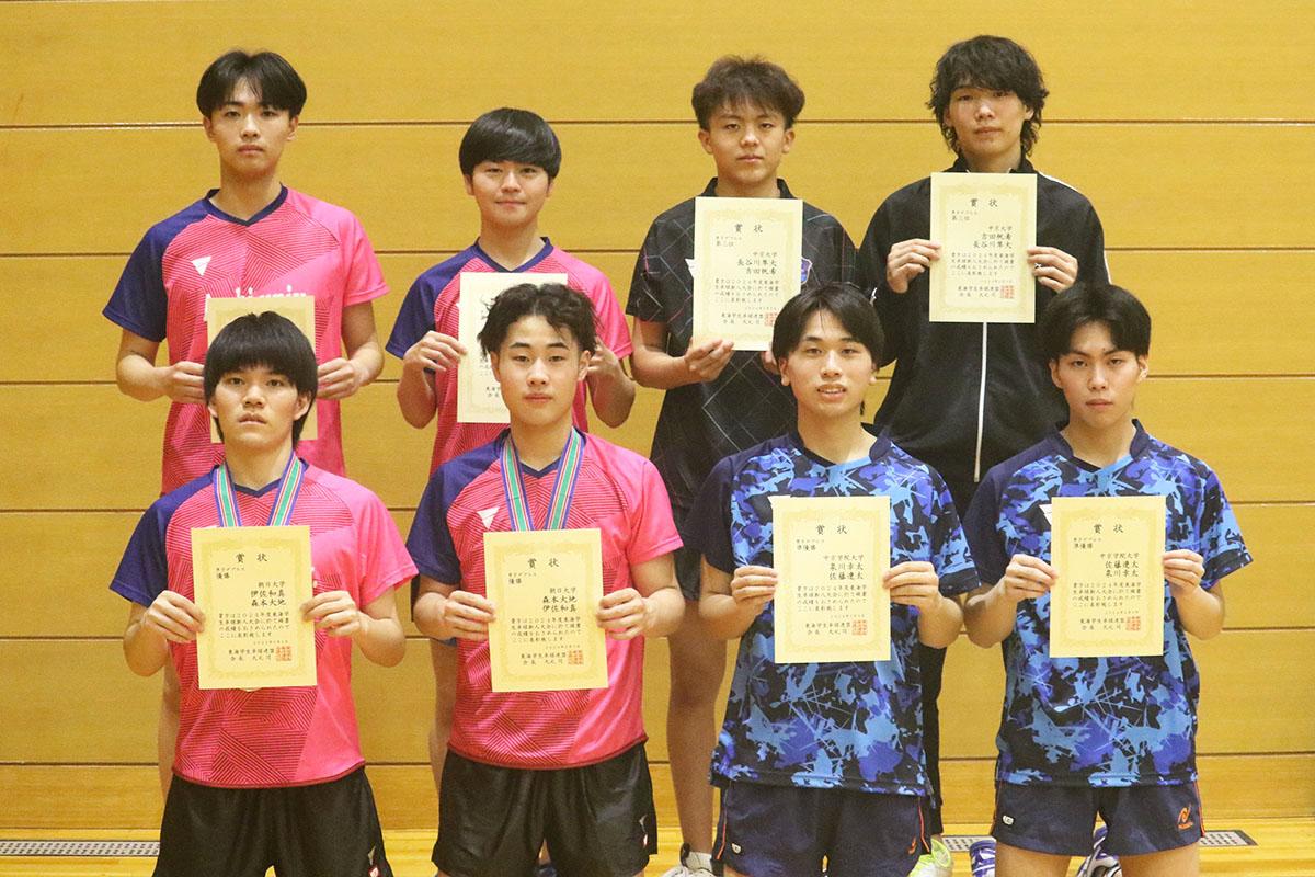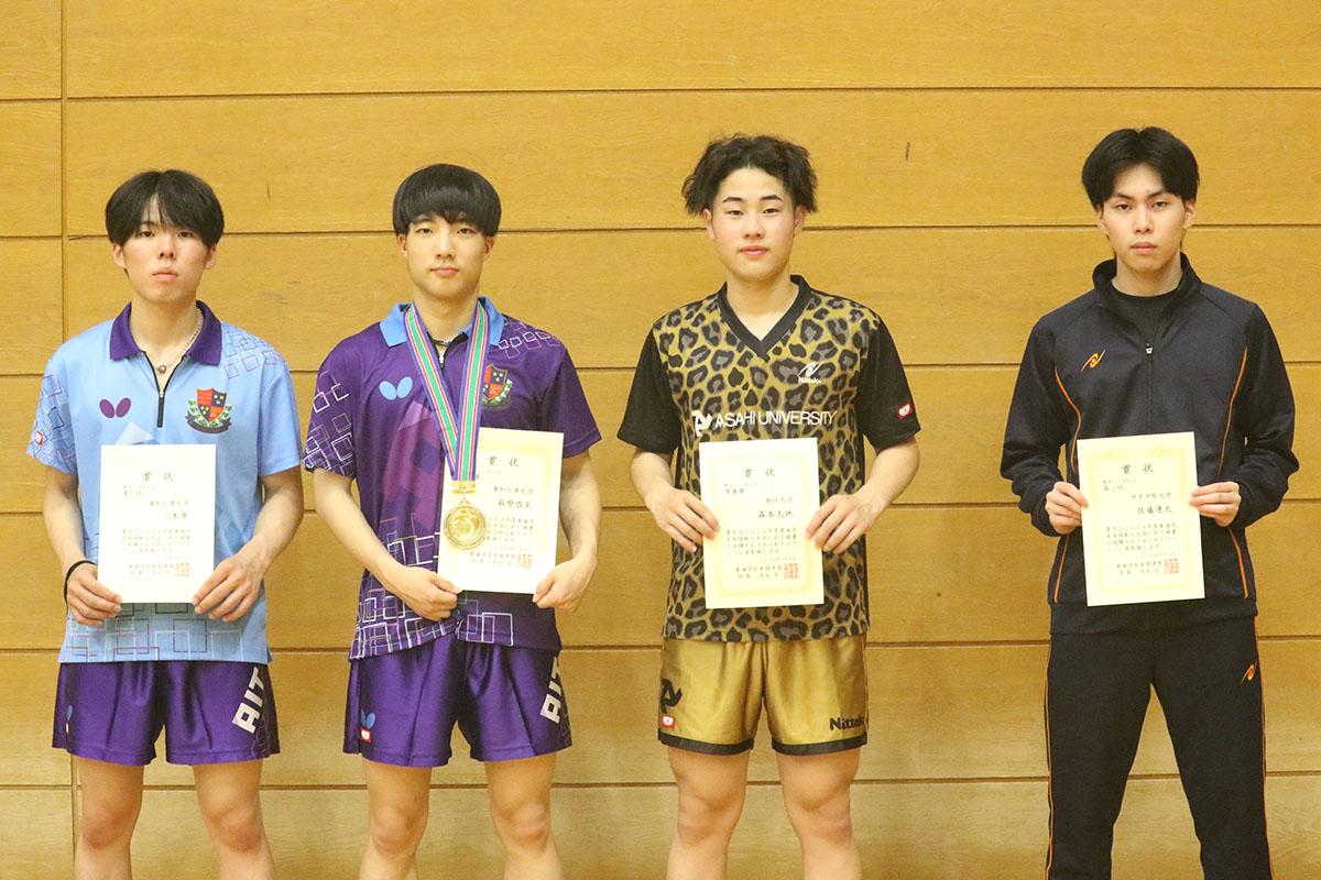 上の写真は男子シングルス優勝の萩原啓至(愛知工業大学)
