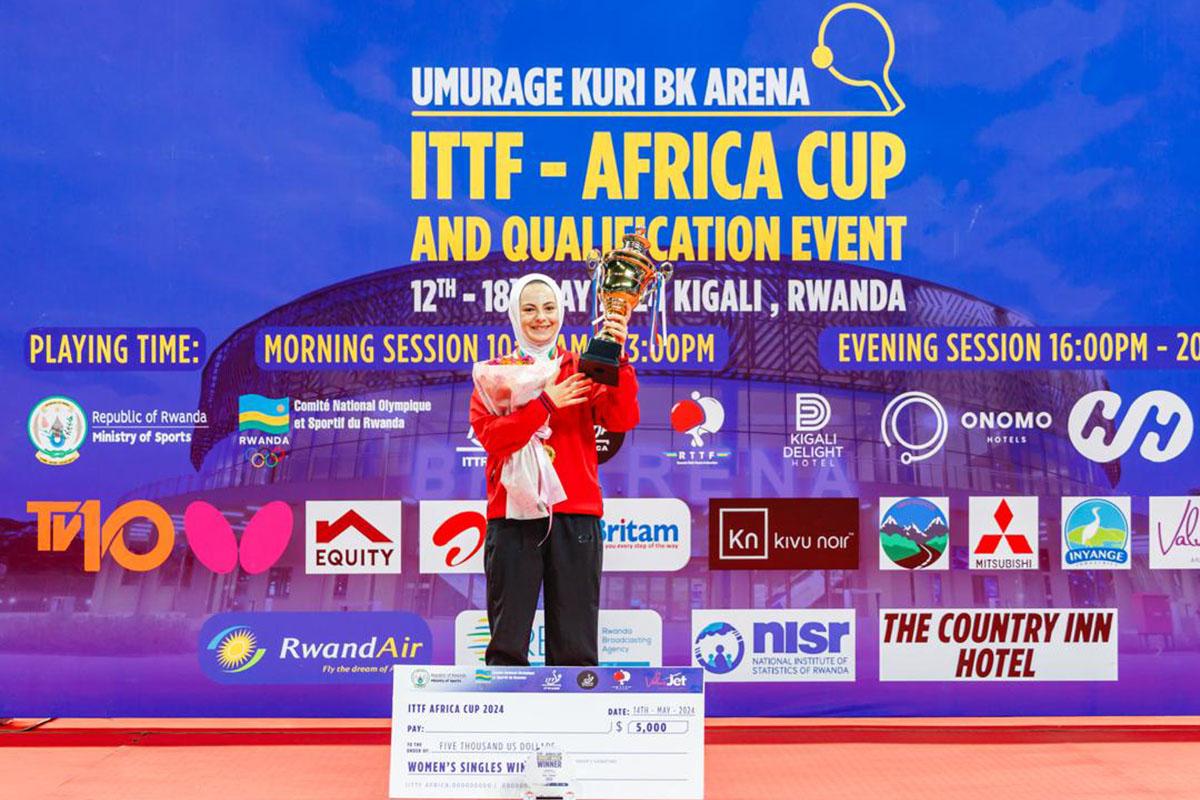 写真は女子シングルス優勝のメシュレフ(エジプト)