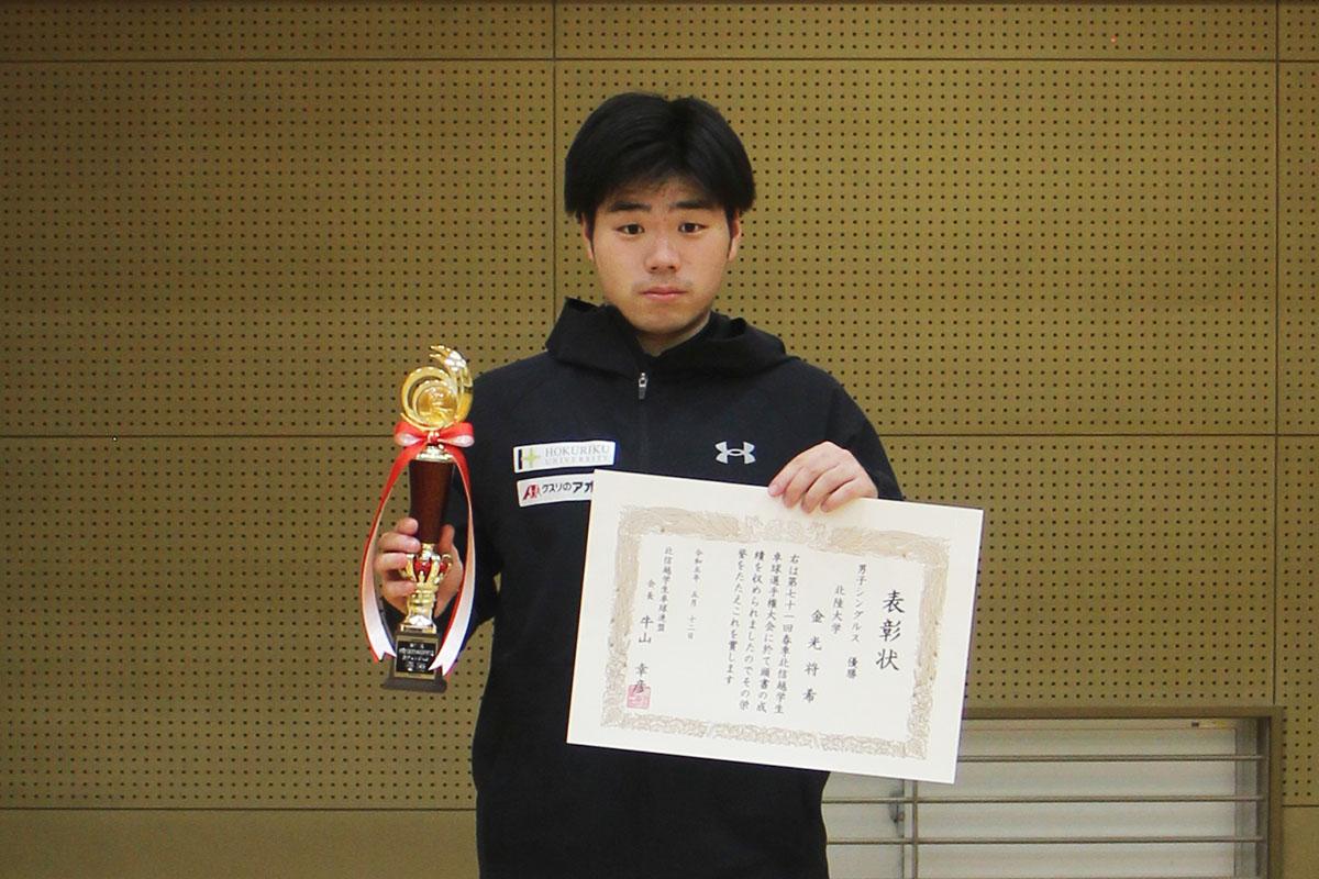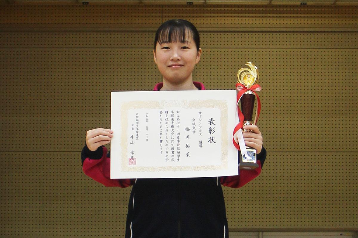 これまでシングルスで結果を残すことができず苦しかったですが、4年目にして初めて優勝することができてうれしいです。4年生で最後の大会というプレッシャーもありましたが、日々の練習の成果を発揮しきることができました。
