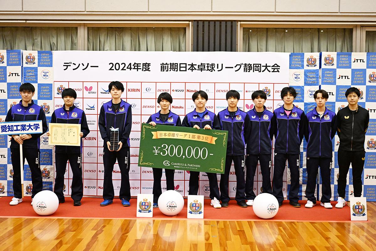 3位には愛知工業大学。4勝3敗でクローバー歯科カスピッズと並んだが、得失点で上回り、表彰台を物にした。