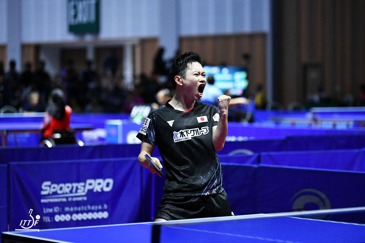 齊藤元希(日本) 11,-7,9,-9,9 HARNPICHAI(タイ)