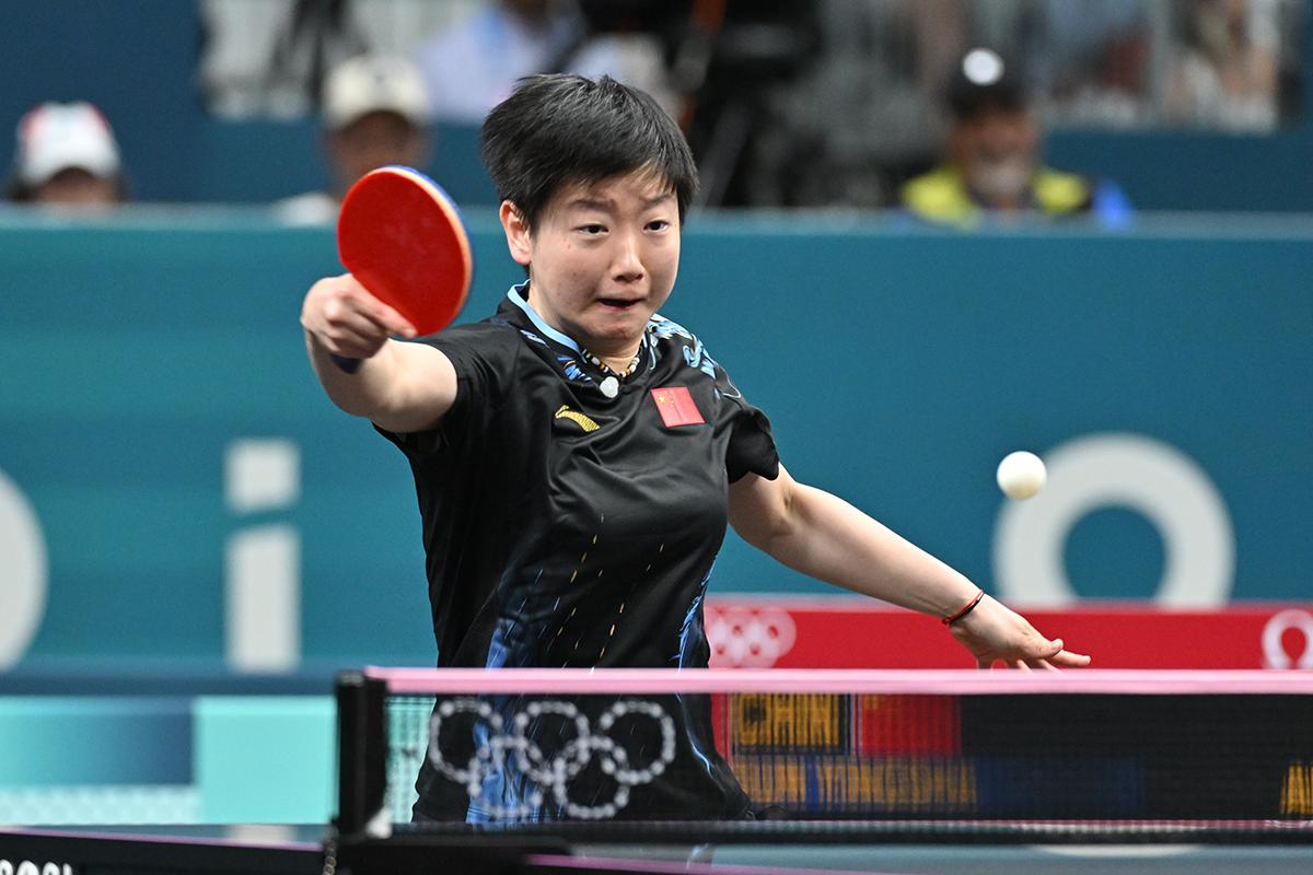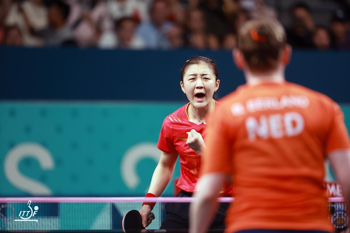 前回の東京オリンピックで金メダルを獲得した陳夢(中国)は3回戦でエーランド(オランダ)のタイミングの取りづらい両ハンド攻守に1ゲームを先行されるが、慌てず大きな打ち合いに持ち込んで、4対1で勝利を収めた。