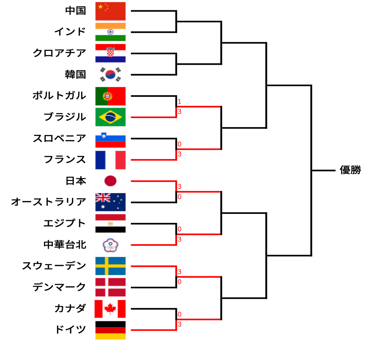 男子団体のトーナメント