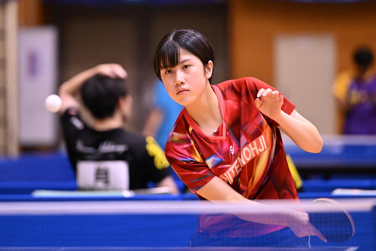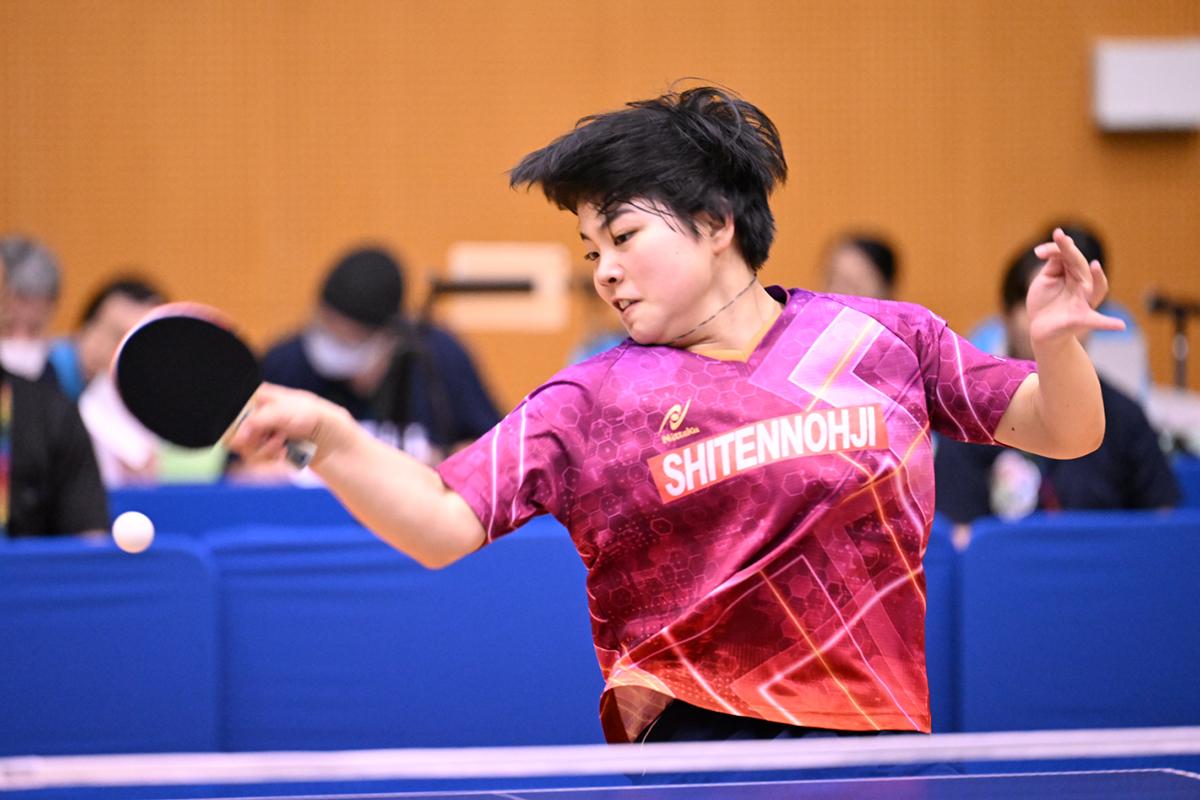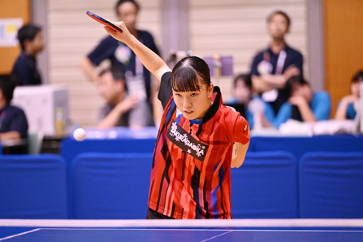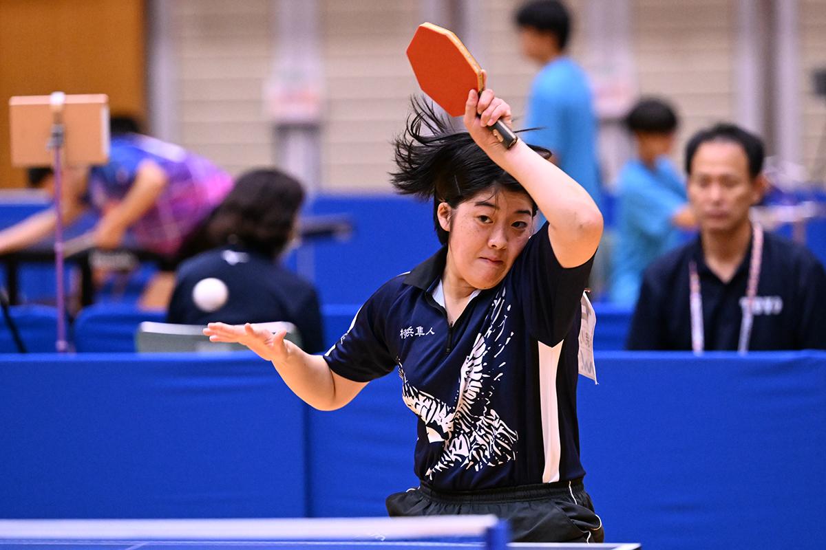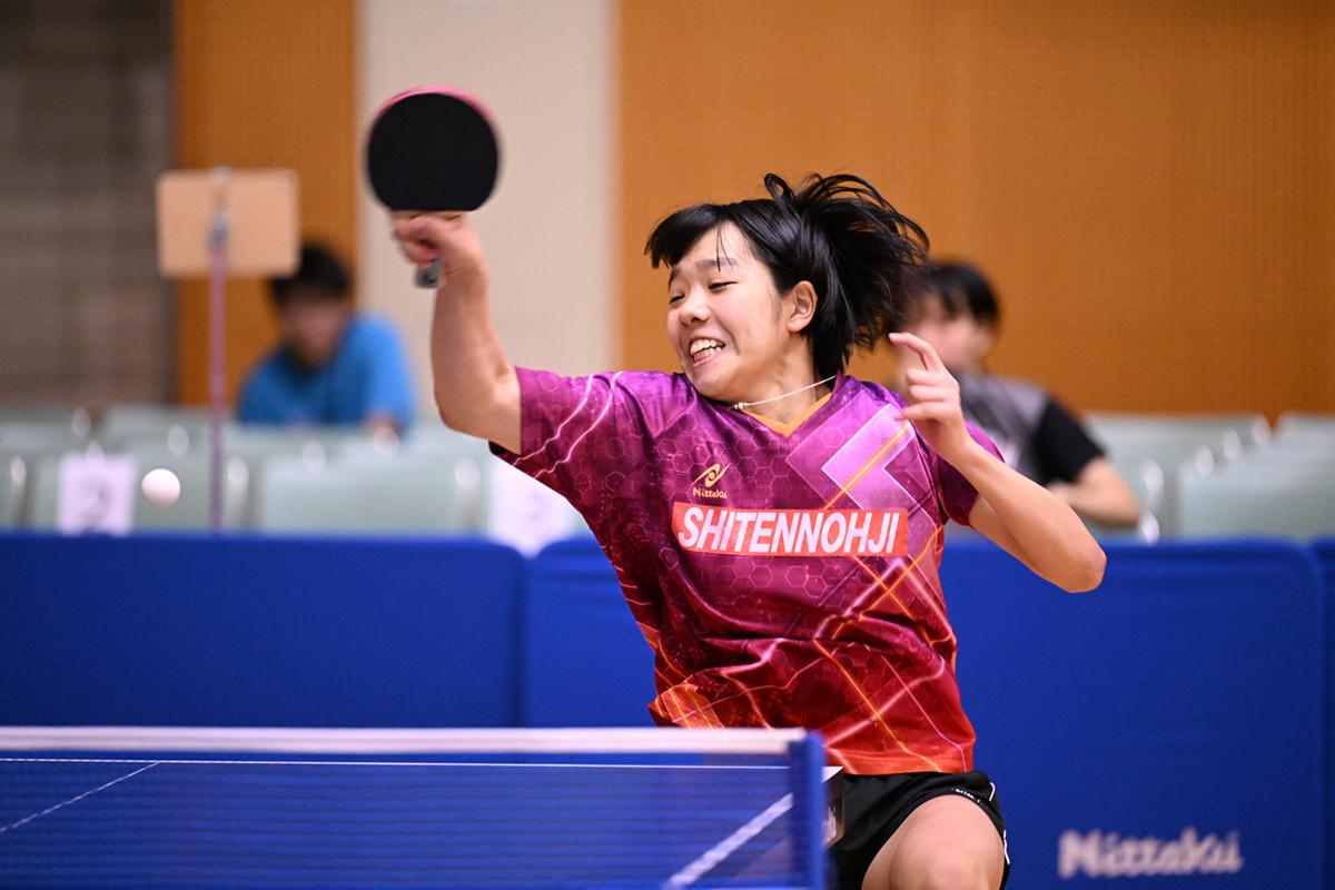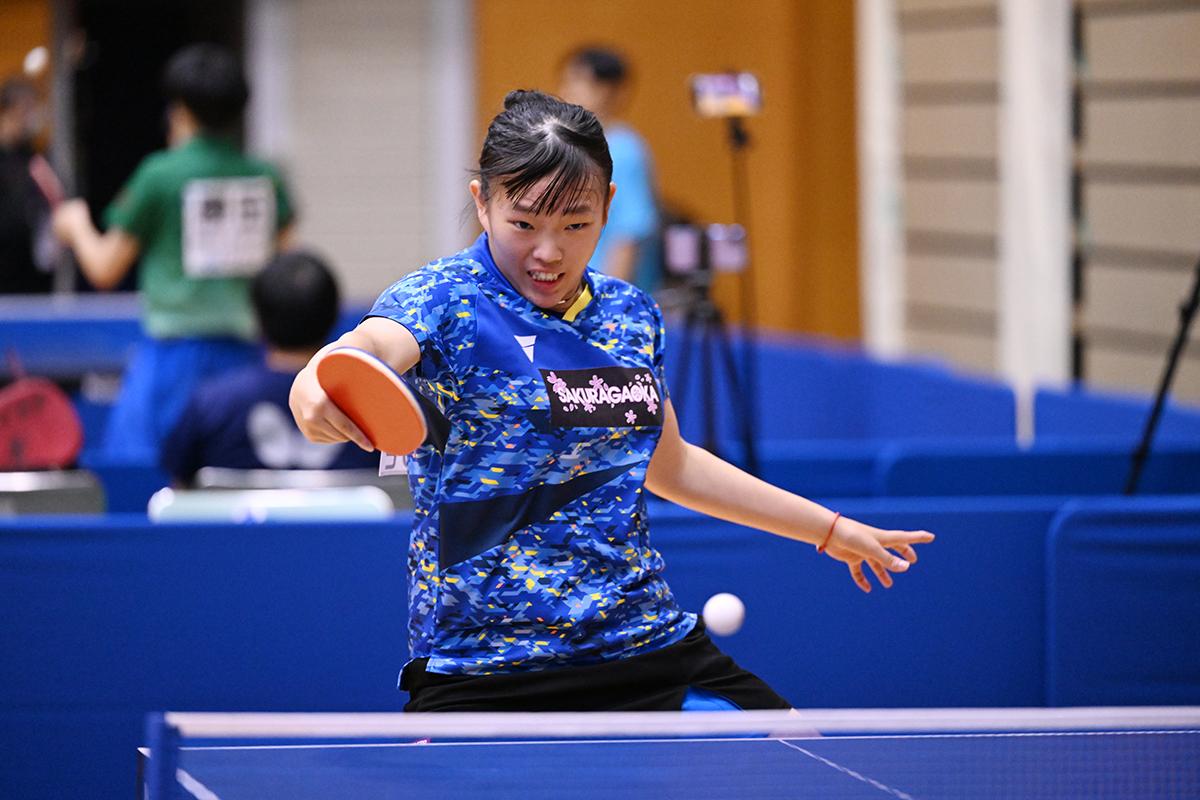 第1シードの青木咲智(四天王寺)は、3回戦で松川佳代(武蔵野)の粘り強い両ハンドに1対2と追い込まれるが、ここを切り抜けると、5回戦では関東王者のルーキー・櫻井花(星槎横浜)を下してベスト8入り。昨年に続く連覇に向けて集中力が高めていることだろう。