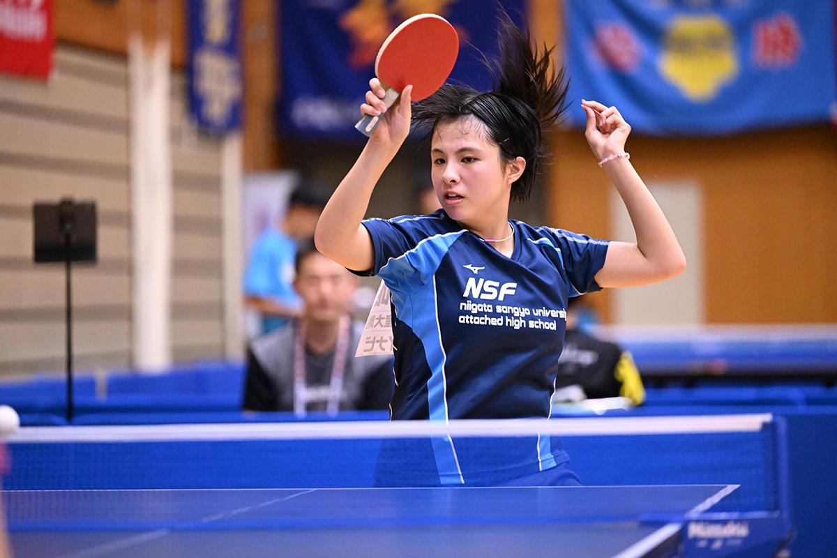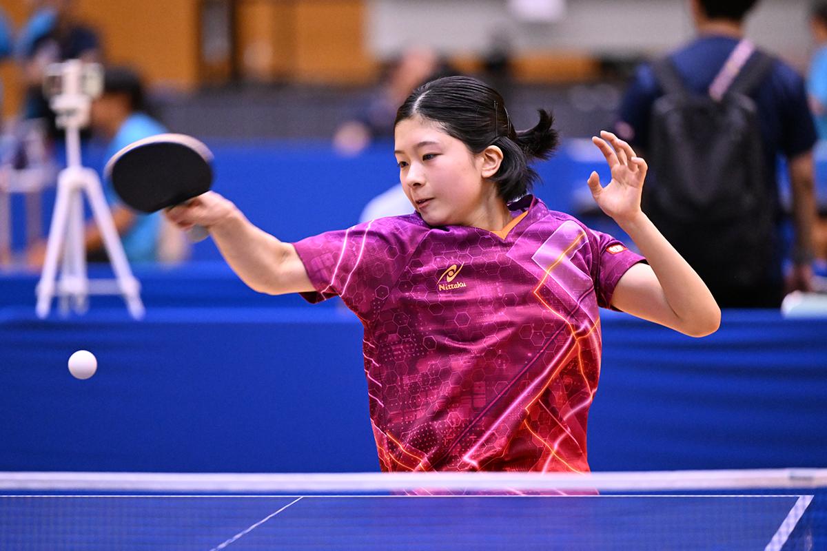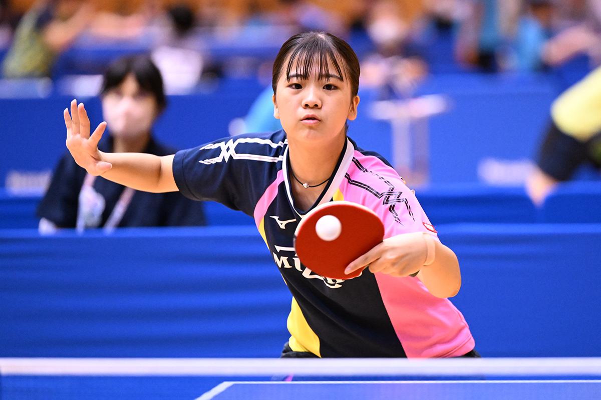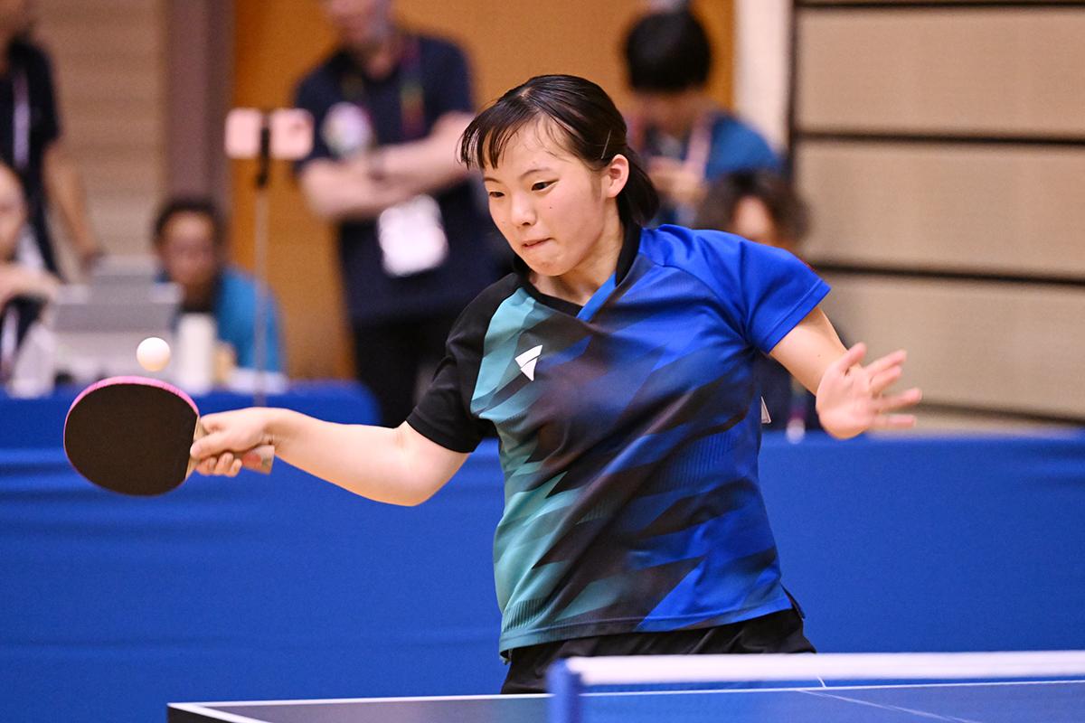 昨年2位の栗山優菜(桜丘)は3回戦で古賀咲音(滋賀学園)のカットにゲームオールの大苦戦。最終の第5ゲームも大きくリードを許す展開となったが、気力を振り絞って古賀のカットを打ち抜き、逆転で勝利すると、5回戦でも九州王者のルーキー・大野紗蘭(希望が丘)とゲームオールの大接戦になるが、勝負どころで得点を渡さず、昨年越えへの執念を見せている。