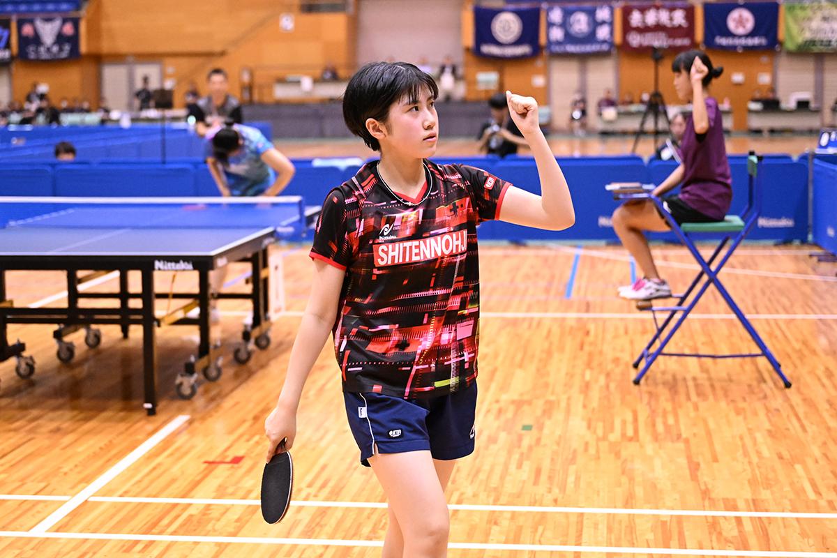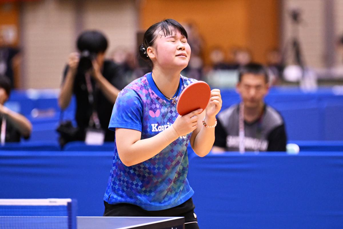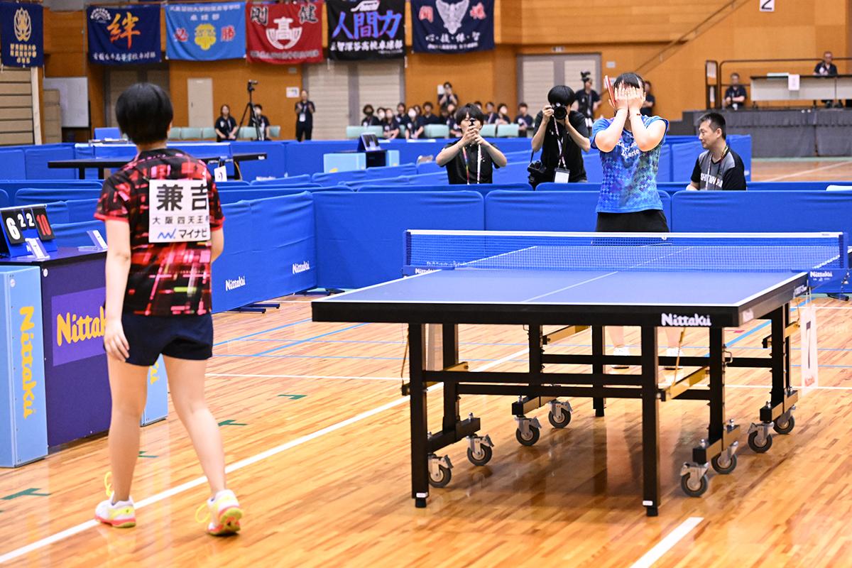 2位の兼吉優花(四天王寺)は、準々決勝で全日本ジュニアで敗れている面手凛(山陽学園)にリベンジを果たすと、準決勝では同じカット主戦型の山室早矢(桜丘)と促進ルールにもつれ込む接戦を制して決勝進出。