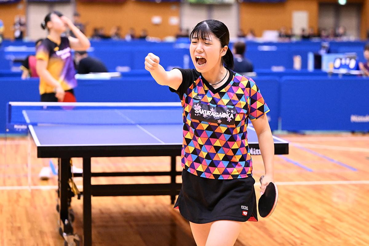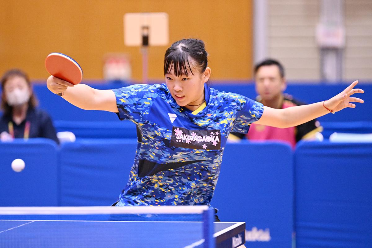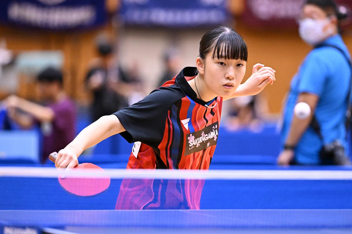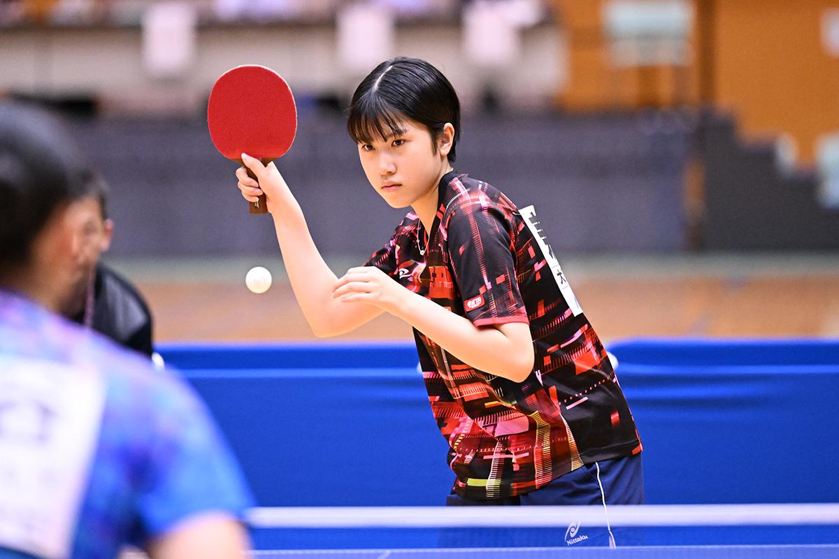 2位の兼吉優花(四天王寺)は、準々決勝で全日本ジュニアで敗れている面手凛(山陽学園)にリベンジを果たすと、準決勝では同じカット主戦型の山室早矢(桜丘)と促進ルールにもつれ込む接戦を制して決勝進出。