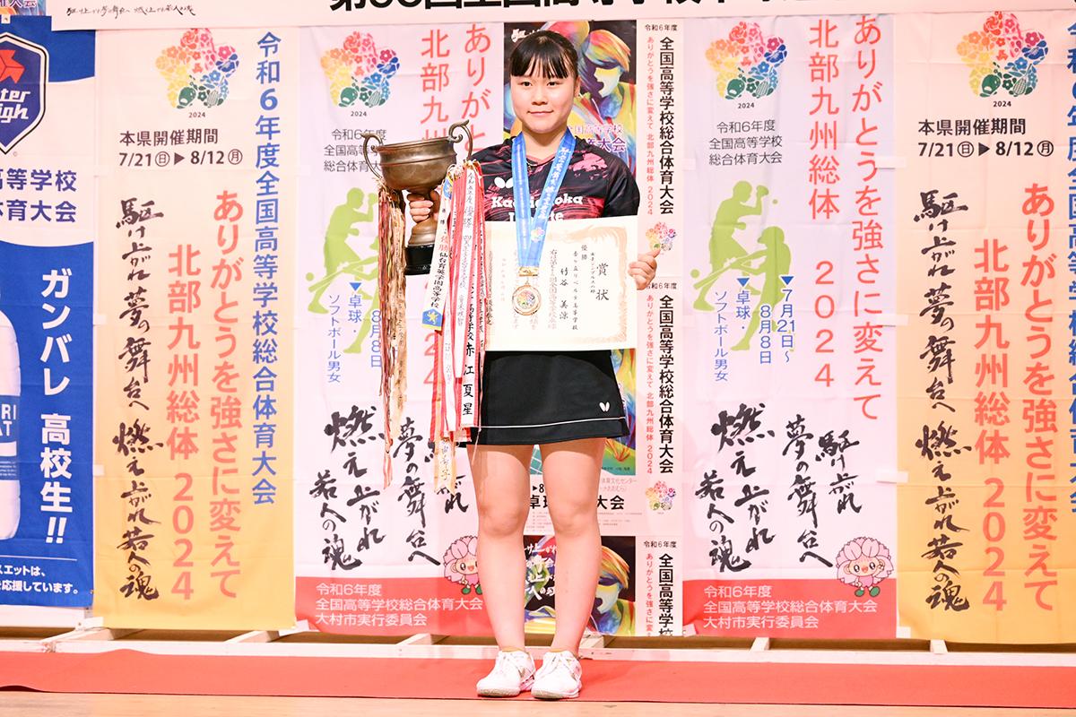 大阪勢が4人、愛知勢が3人という今の女子高校卓球界を象徴するようなベスト8の顔ぶれの中、1年生の竹谷美涼(リベルテ)が優勝を果たした。