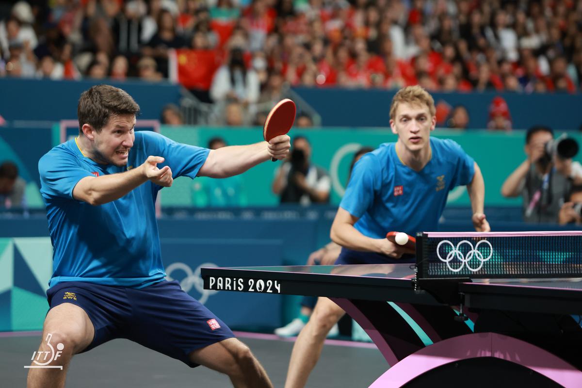 最終ゲームは中国らしいスタートダッシュで集中した馬龍/王楚欽に対してスウェーデンペアにミスが出て、5-2で折り返し。スウェーデンペアも好プレーを見せるが、6-4でタイムアウトを挟んだ中国ペアが4点連取で10-4とマッチポイント。スウェーデンペアはカールソンのチキータで2本しのぎ、ストップの応酬で王楚欽にミスがでるが、10-7から大きなラリーで馬龍がオープンスペースにフォアハンドドライブをたたき込んで中国が1点目を挙げた。