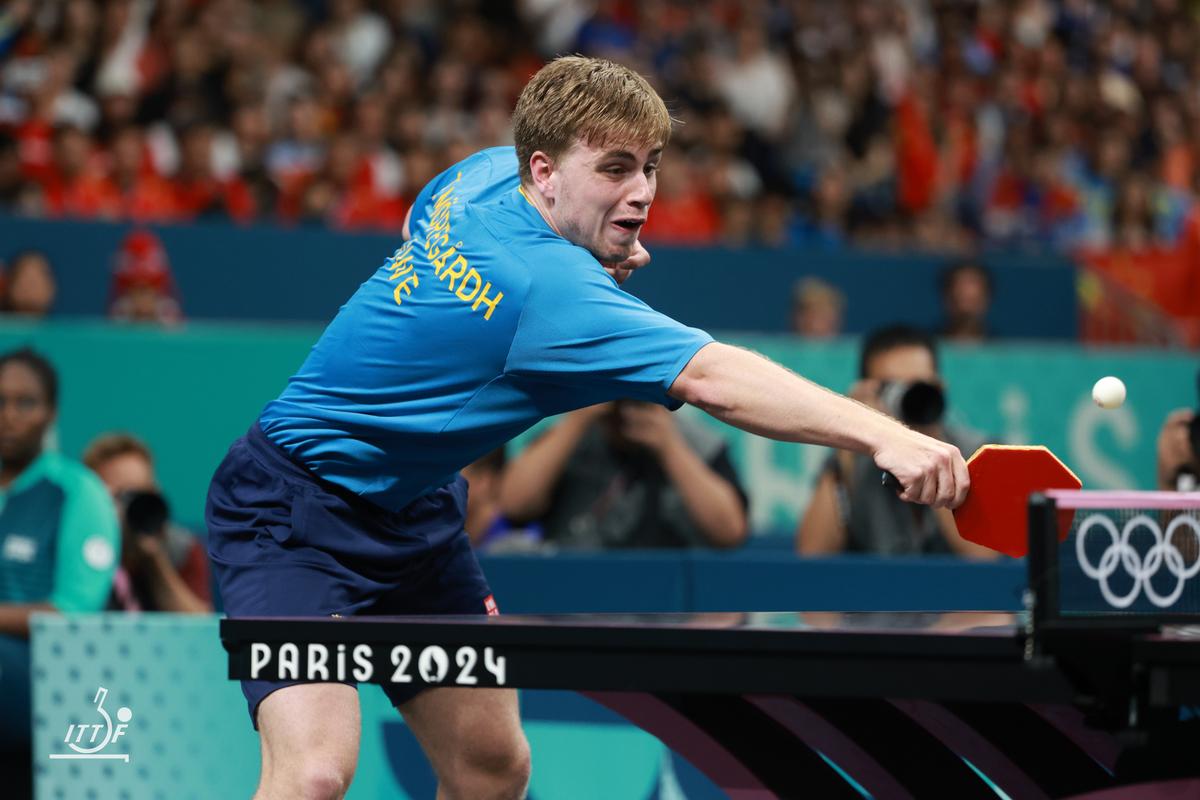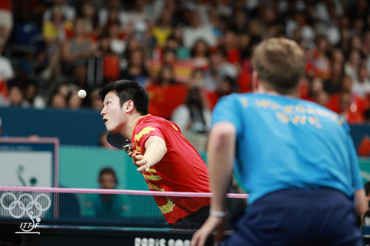樊振東はツッツキを持ち上げさせてのカウンターなど、基本的な戦術に立ち戻ると、5-1と大きくリード。モーレゴードのバックストレートへのプッシュにも素晴らしい反応を見せてカウンター。完全に流れをつかんだ樊振東の前に、さすがに集中力を欠いたかモーレゴードは奇抜なサービスなどでその場をしのぐが、最後は樊振東のやや浮いたストップレシーブをモーレゴードのフリックがネットにかかり、樊振東が今大会モーレゴードに2連勝で中国が金メダルに王手をかけた。