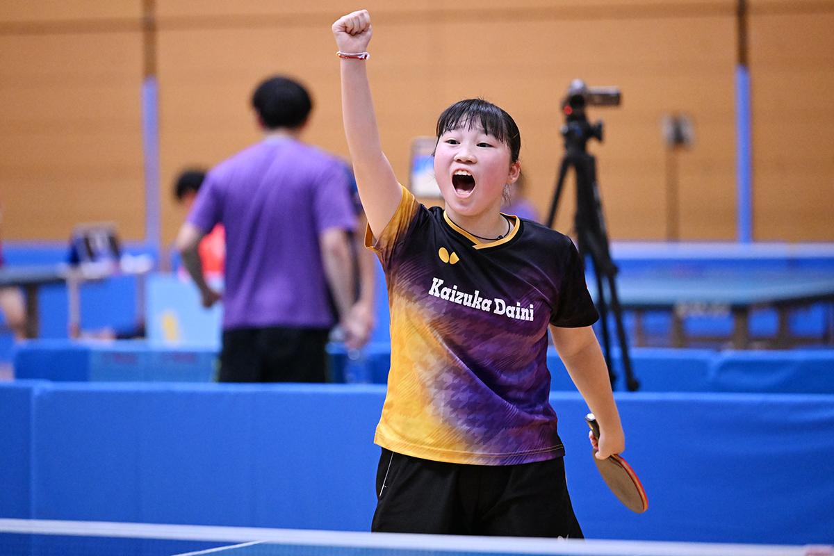 金田優陽(入谷南)は、3回戦で外シードの上田遥音(西代)との前陣でのたたき合いをゲームオールジュースで制すと、4回戦では水元心愛(明徳義塾)をストレートで下して8強入り。