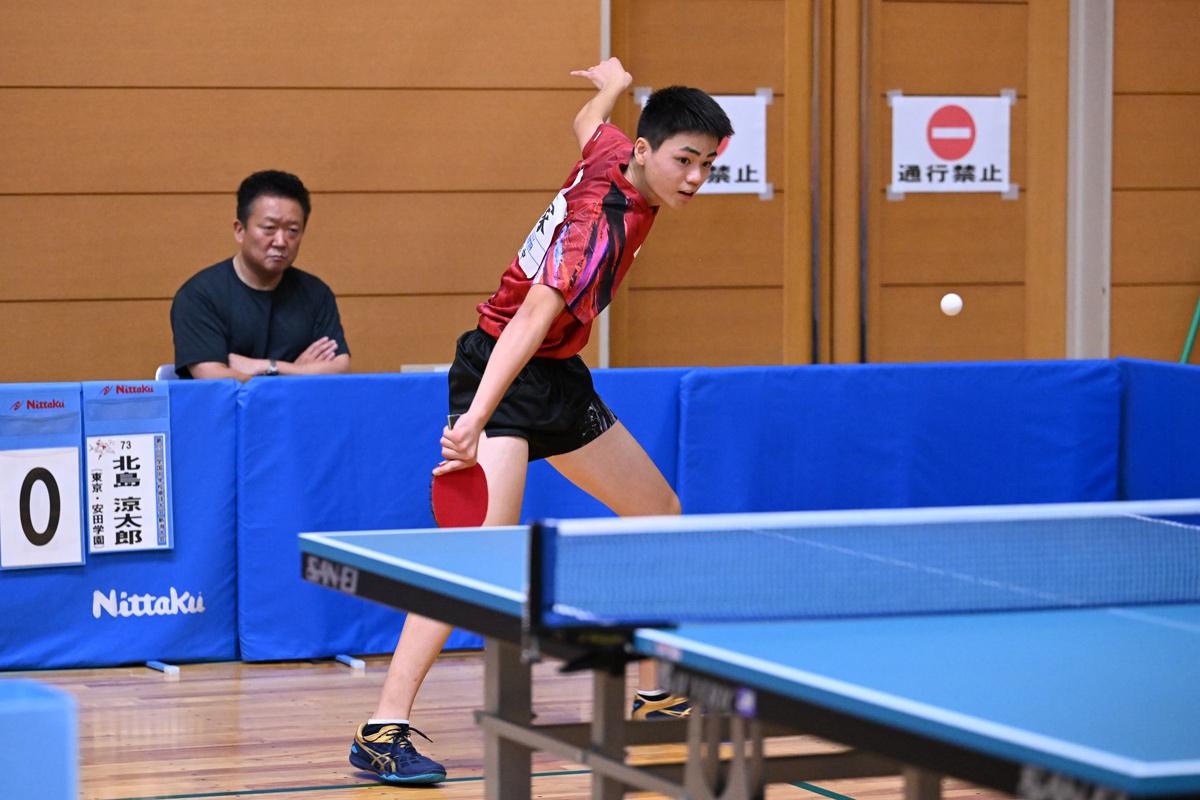第1シードの岩井田駿斗(野田学園)は同級生でホープス王者の川上流星(星槎)と4回戦で当たる組み合わせとなってしまった。決勝でもおかしくない好カードであることに加え、川上が新潟にある新発田ジュニア出身でもあることから、会場の注目が集まったが、試合は決定力の高い両ハンドで先手を取った川上が主導権を握り、優勝候補筆頭の岩井田を破ってベスト8入りを決めた。