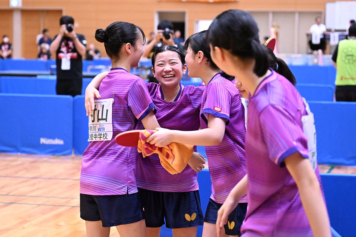 連覇できてすごく嬉しいです。中学生がみんな目標としている大会なので、全国大会というプレッシャーはありました。そこで勝ちたいというプレッシャーはあったんですけど、団体戦に関してはメンバーも替わってますし他校も替わってますので、連覇とかディフェンディングチャンピオンとか、そういうプレッシャーは1パーセントもなく、フレッシュな気持ちで挑みました。序盤はかなり苦しい試合が続きましたが、それも選手のいい成長の機会になったのかなと振り返ってみれば思います。