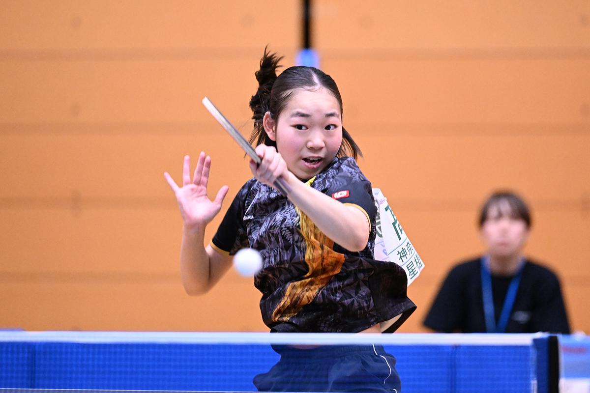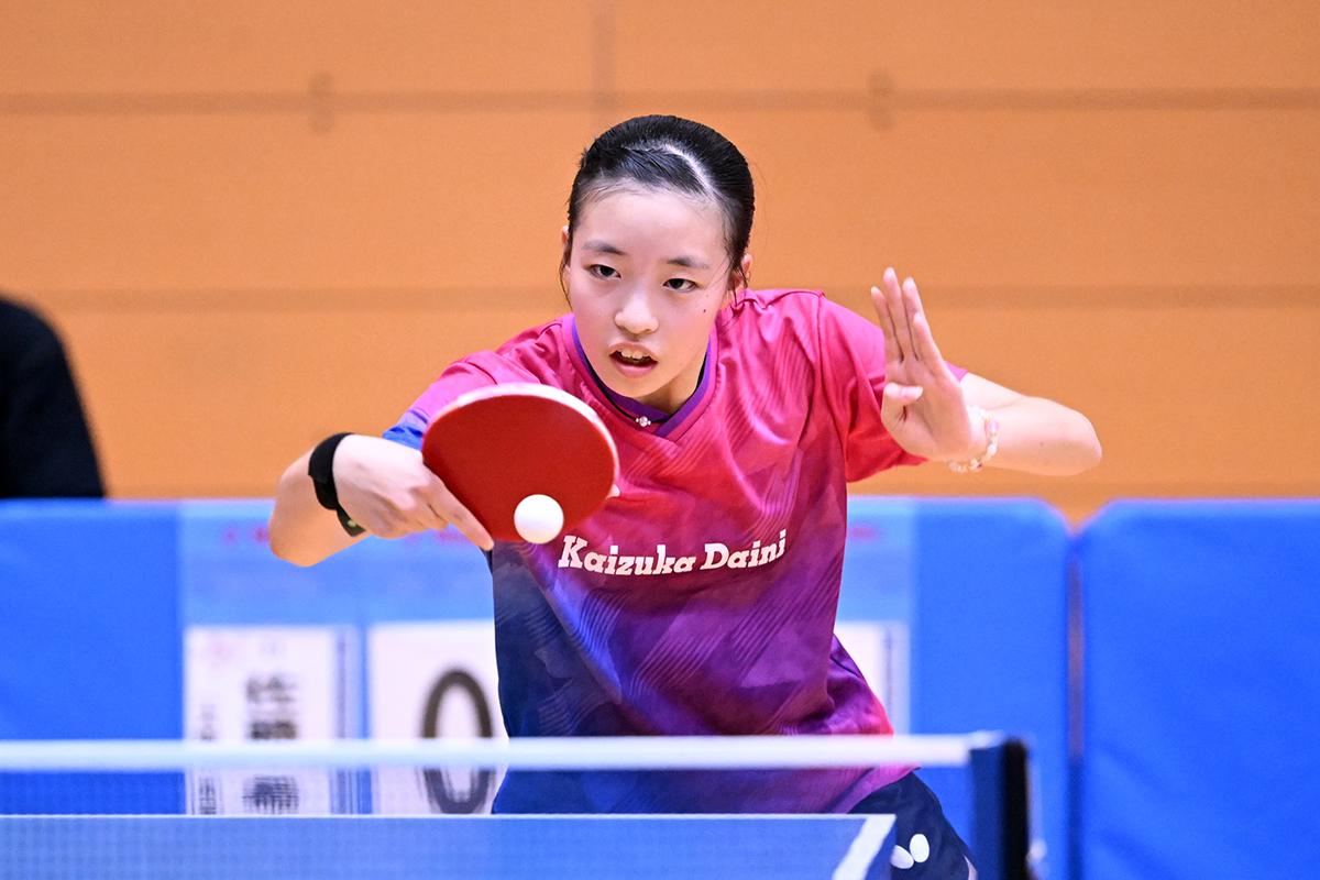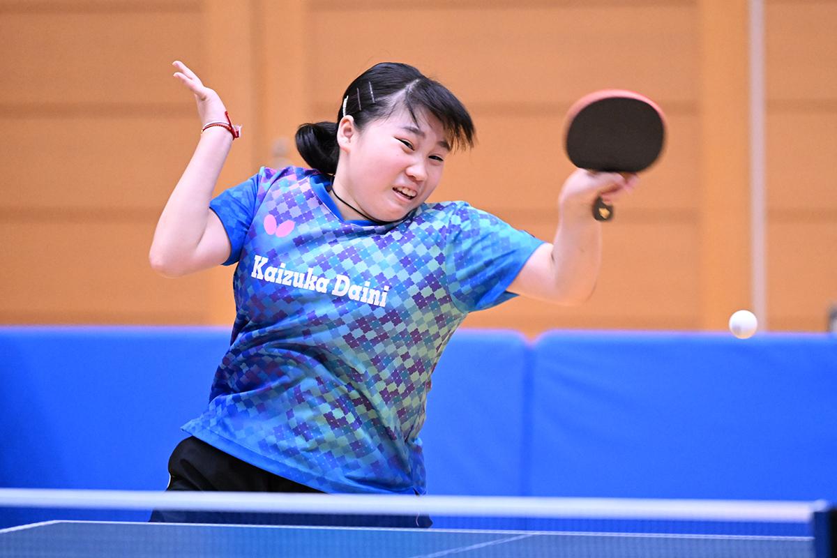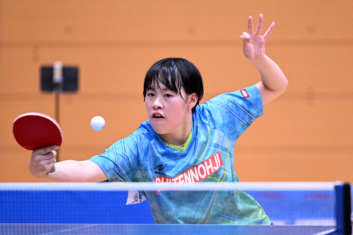 決勝では、前陣速攻を得意とする渡会(四天王寺)に対し、立ち上がりはリードを許すも、徐々に読みがさえて思い切った両ハンド強打を決めて突き放し、一気に頂点をつかんだ。