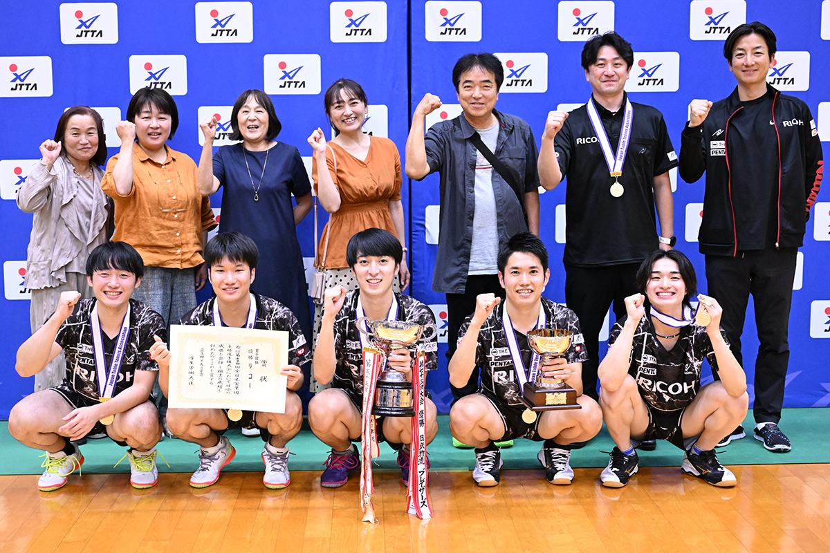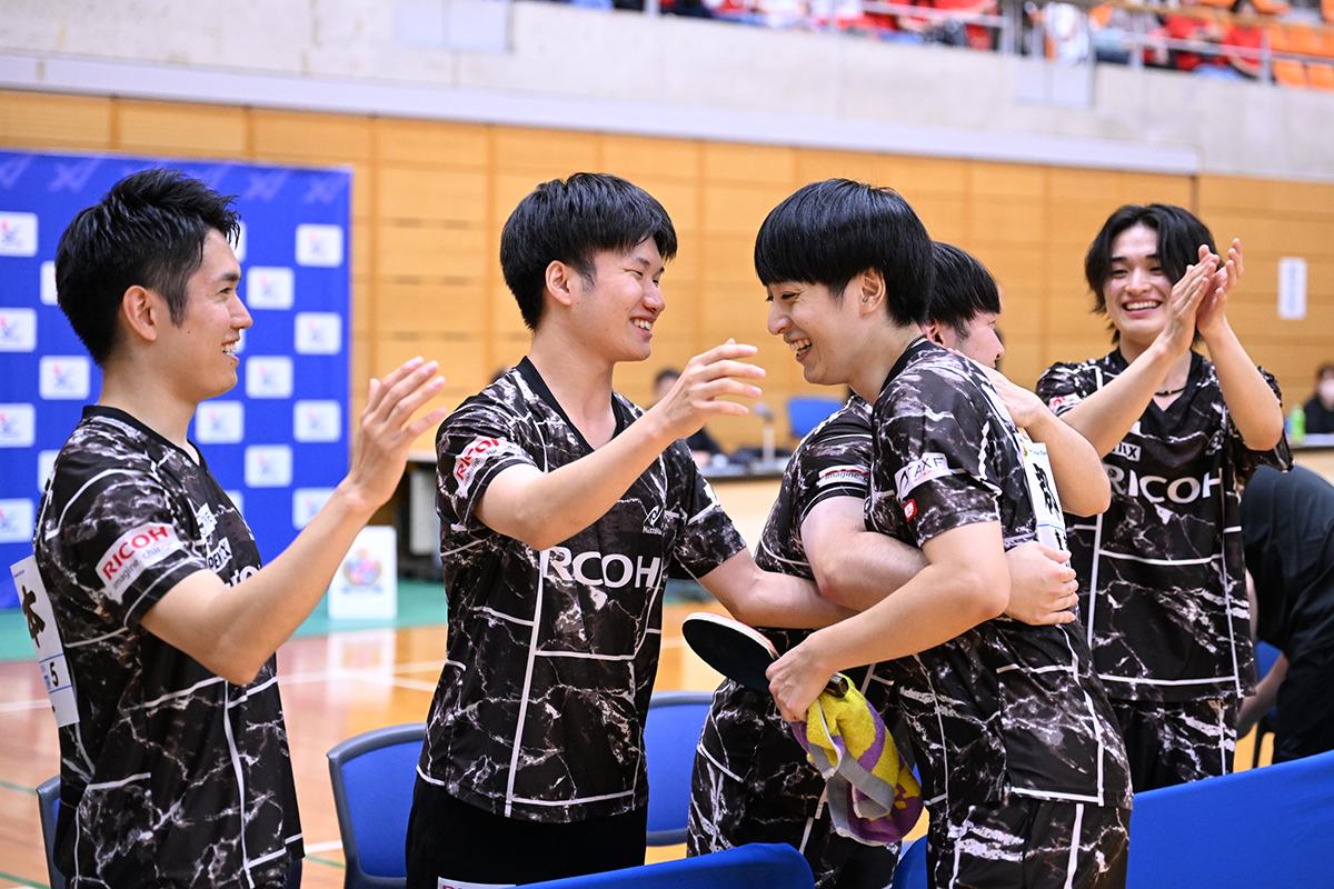 男子は、度重なる接戦をくぐり抜けたリコーが悲願の初優勝を果たした。