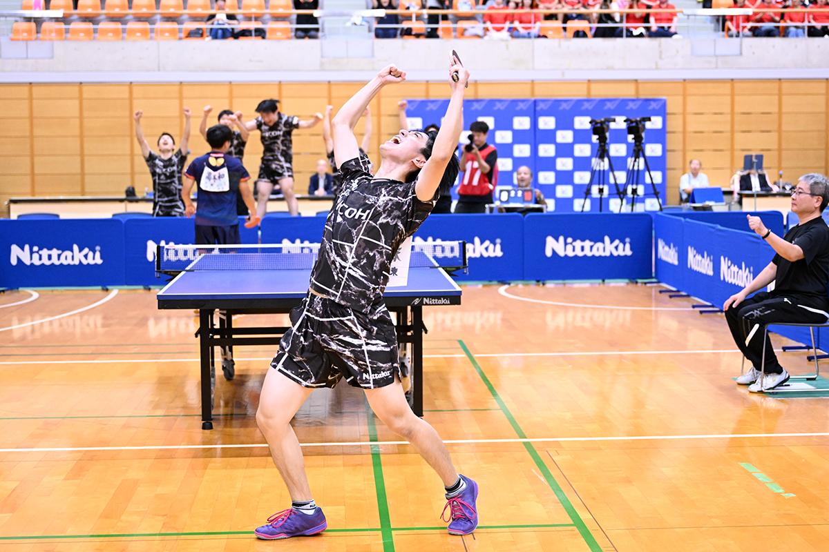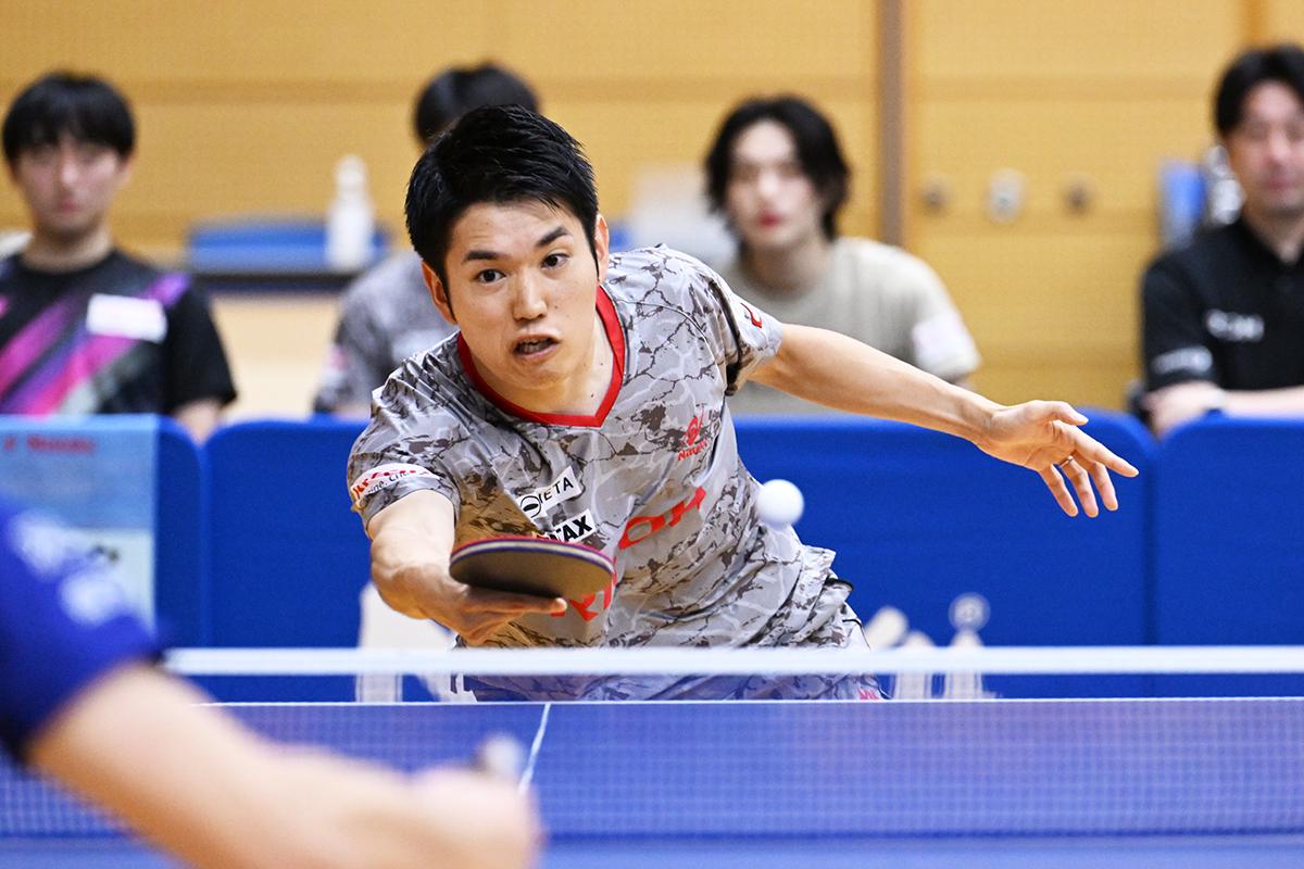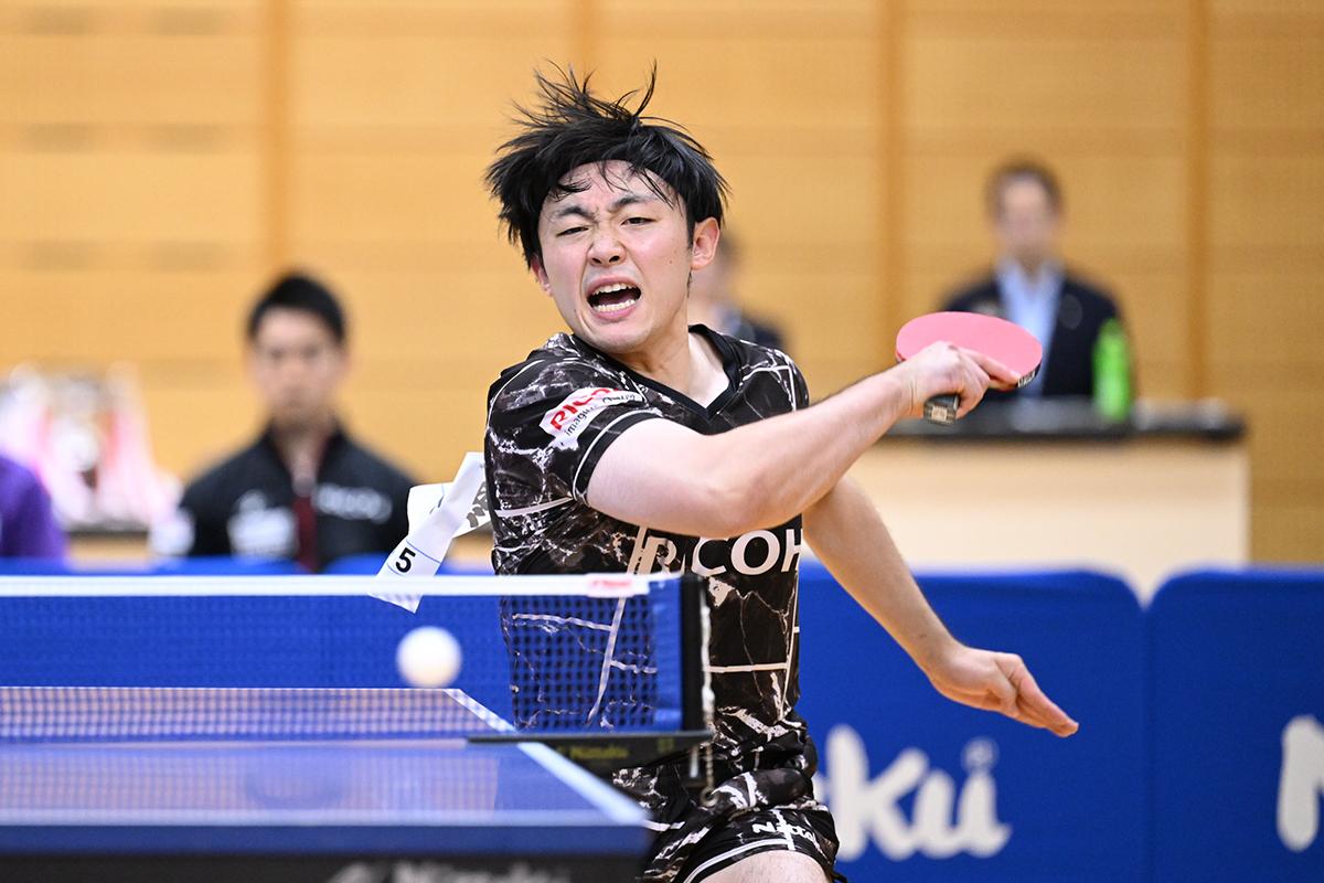 会場がどよめくような大胆なカウンターを放つ郡山と、しぶとくドライブをねじ込む高木和の試合は激しく打ち合いながらゲームオールまでもつれたが、「攻めていくことだけを意識した」という郡山が最後は劇的な回り込みカウンターを高木和のコートに突き刺し、リコーの初優勝を決めた。