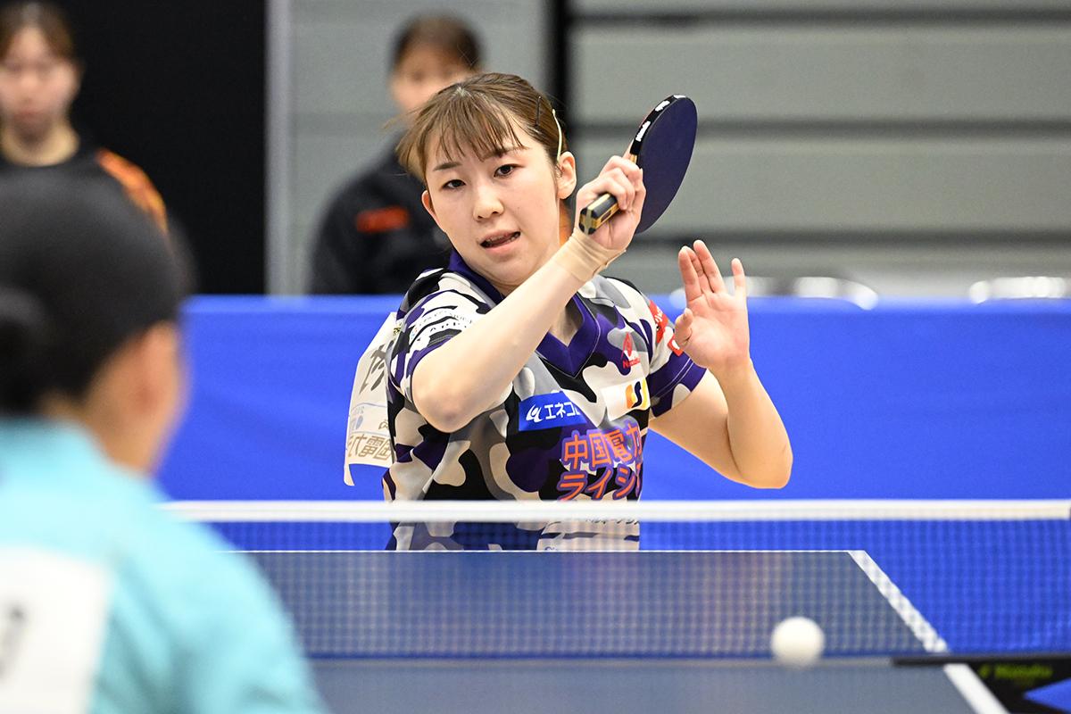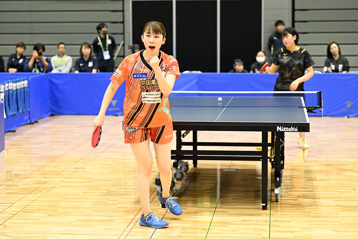 ジュニアナショナルチームとの準決勝では互いが点を取り合い、勝負は5番の木村対兼吉へ。この準決勝まで、その変化カットで圧倒的な強さを見せている兼吉が優位かと思われたが、「過去に兼吉さんに木村が勝っているので当てたかった」と中国電力ライシスの伊藤春美監督が狙った通り、木村は、不用意にドライブすると兼吉に変化をつけられてしまうため、好機ではスマッシュを多用する見事な戦術で難敵をかわし、中国電力ライシスの勝利を決めると、決勝では筑波大学と対戦。