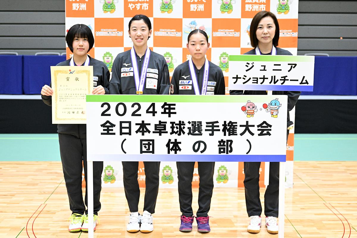 3位のジュニアナショナルチームは、中国電力ライシスにラストまでもつれる接戦の末に敗れた。エース起用の面手がトップで木村に敗れ、ラストの兼吉も木村の巧みなカット打ちに敗れて、2年ぶりの優勝はならず。