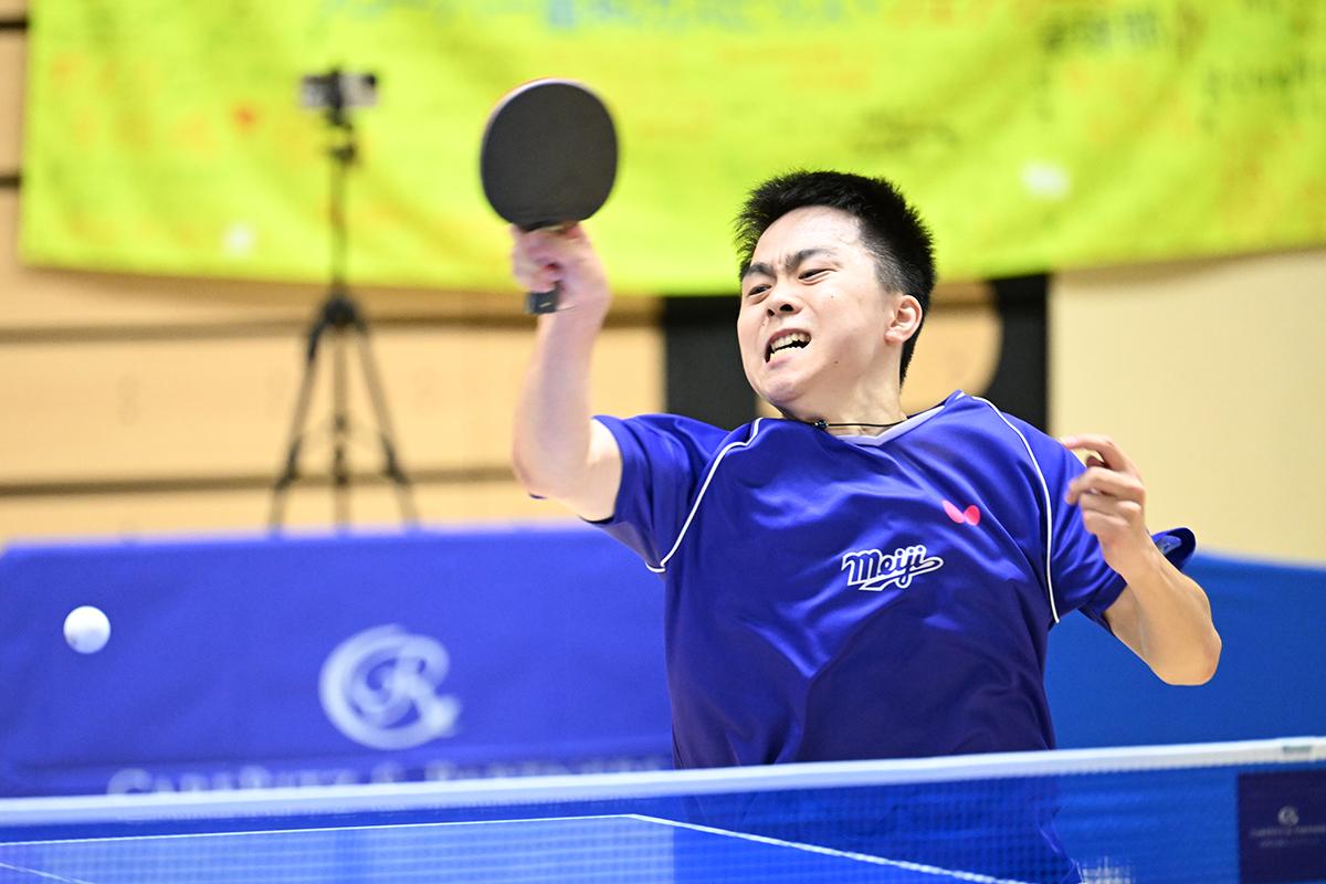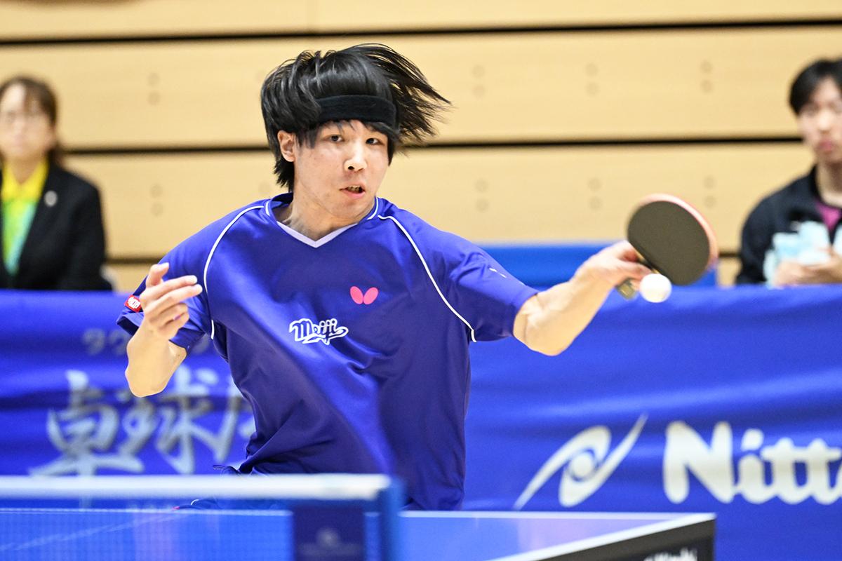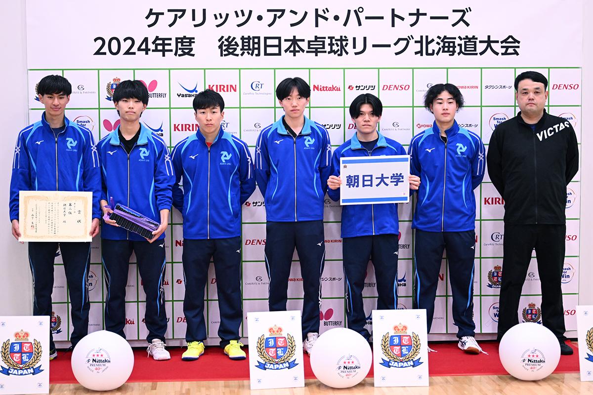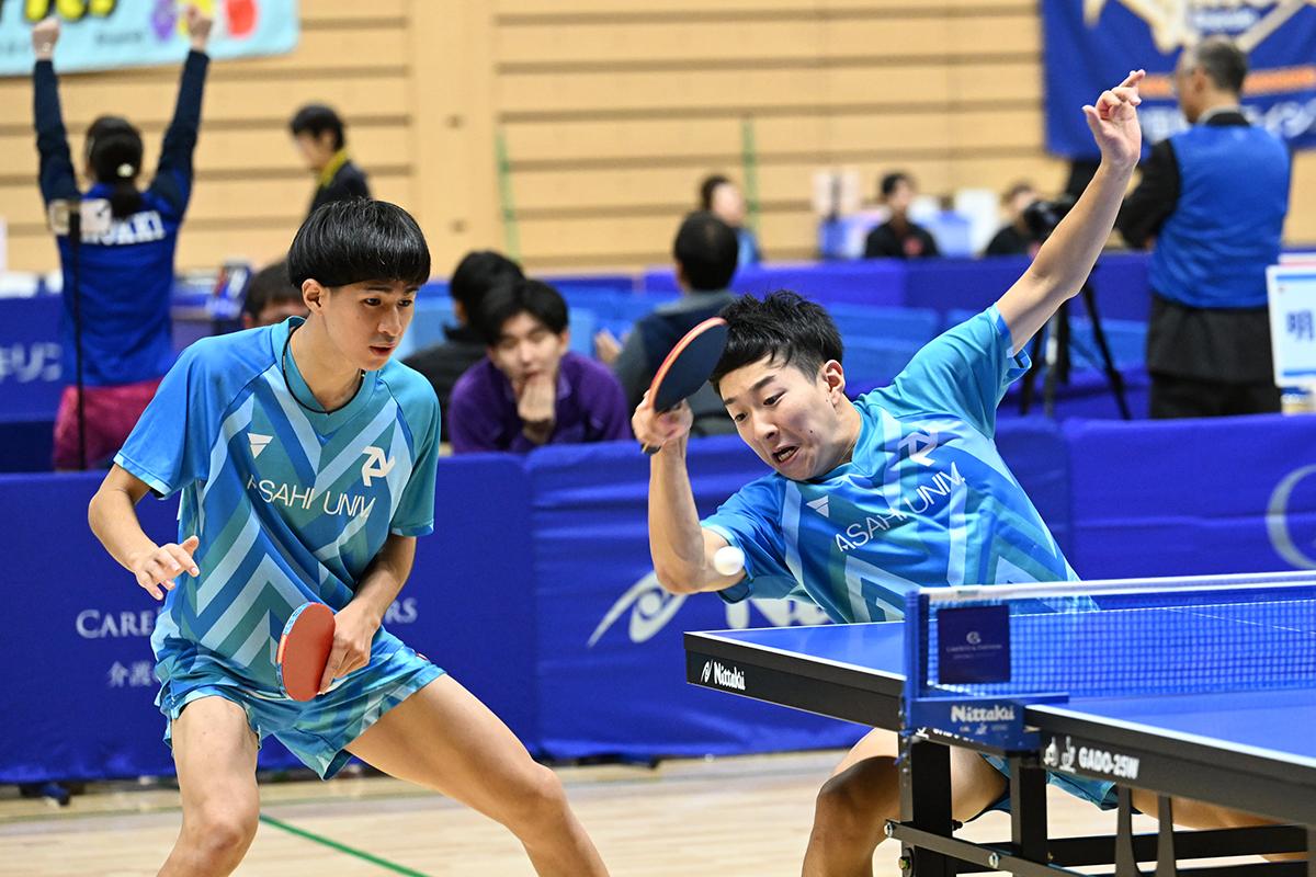 2位は朝日大学。明治大学には競り負けたが、信号器材、関西卓球アカデミーをともに3対2で振り切り、粘り強さを見せた。