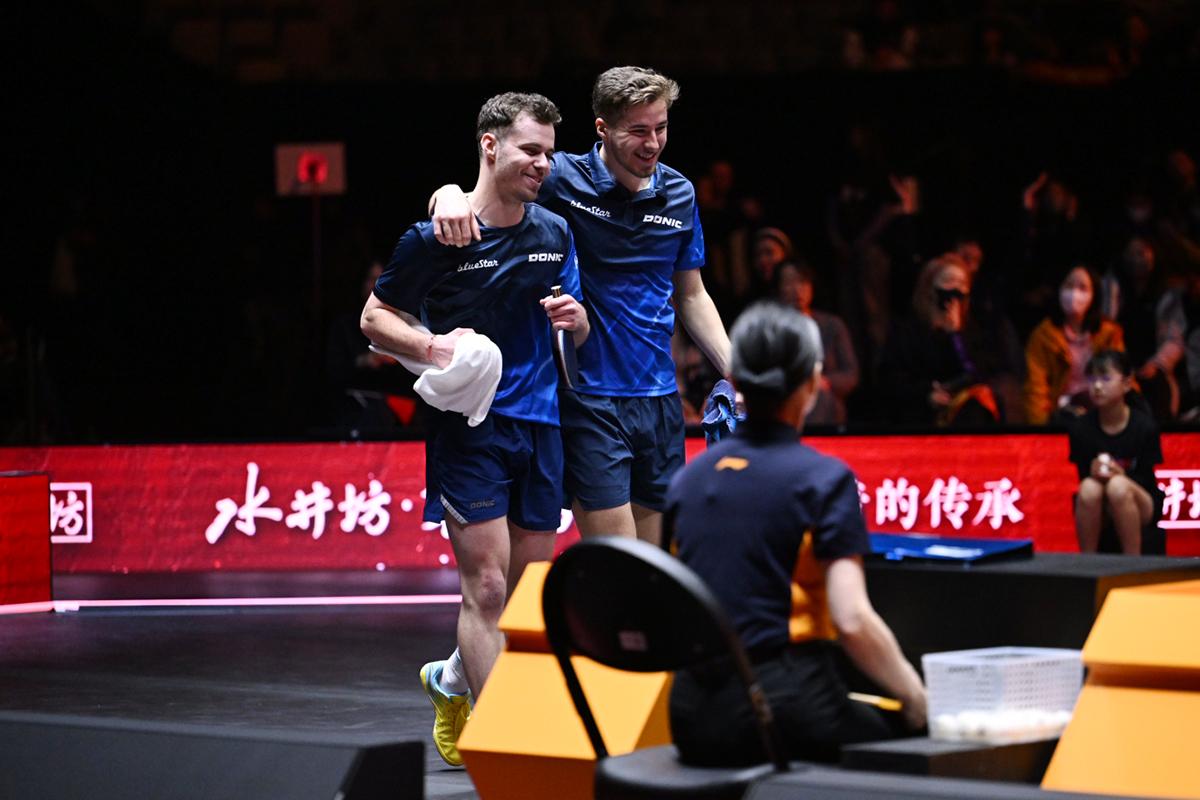 ドール/ブラソー(フランス)対何鈞傑/林兆恒(香港)の一戦は会場が大いに沸く華々しい打ち合いになったが、ドール/ブラソーがゲームオールの接戦を制して準決勝進出。香港ペアに0対2とリードを許したところから闘志に火がついたようなプレーで、一気に逆転勝利を収めた。