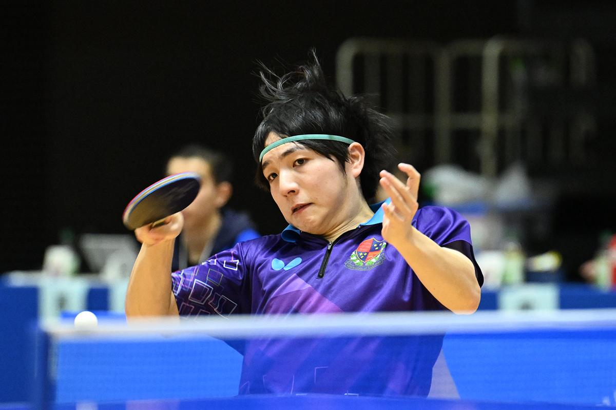 続く2番、エース起用の阿部は、鈴木のテクニックとフォアハンドに押され、2ゲームを連取される苦しい展開。このまま敗れると流れが愛知工業大学に行きそうな場面だったが、第3ゲームから思い切ったロングサービスを混ぜる配球で鈴木の足を鈍らせ、ゲームオールジュースで逆転勝利を収めると、ダブルスもゲームオールの競り合いを勝ち切ってストレート勝利で決勝進出を決めた。
