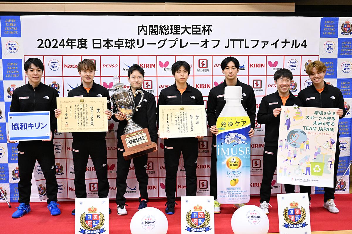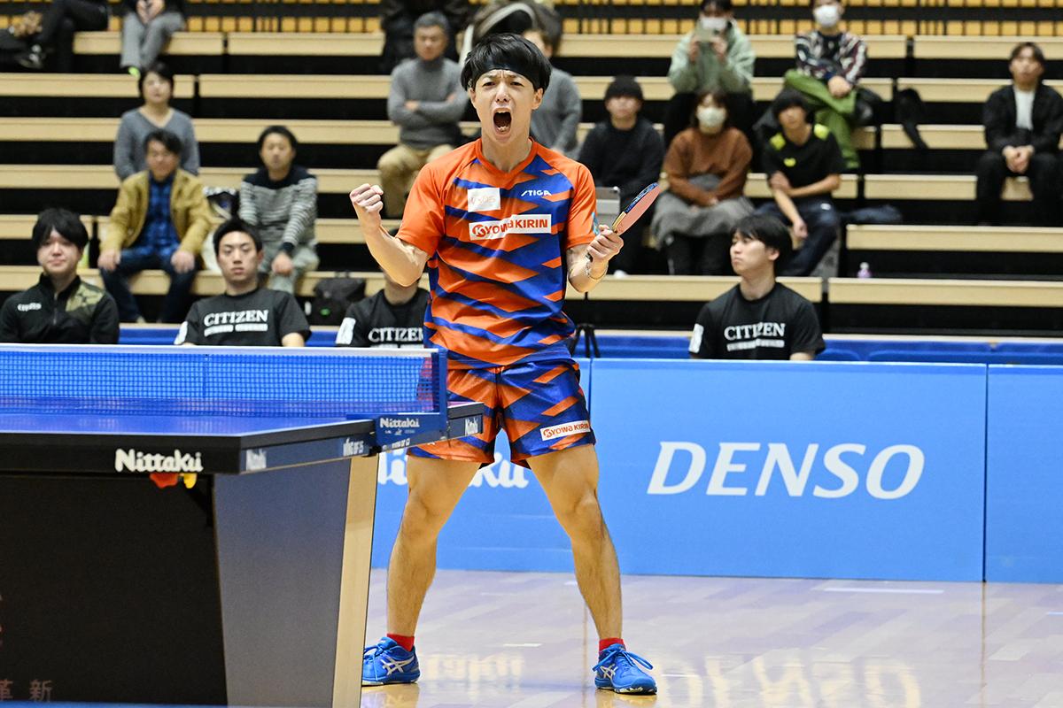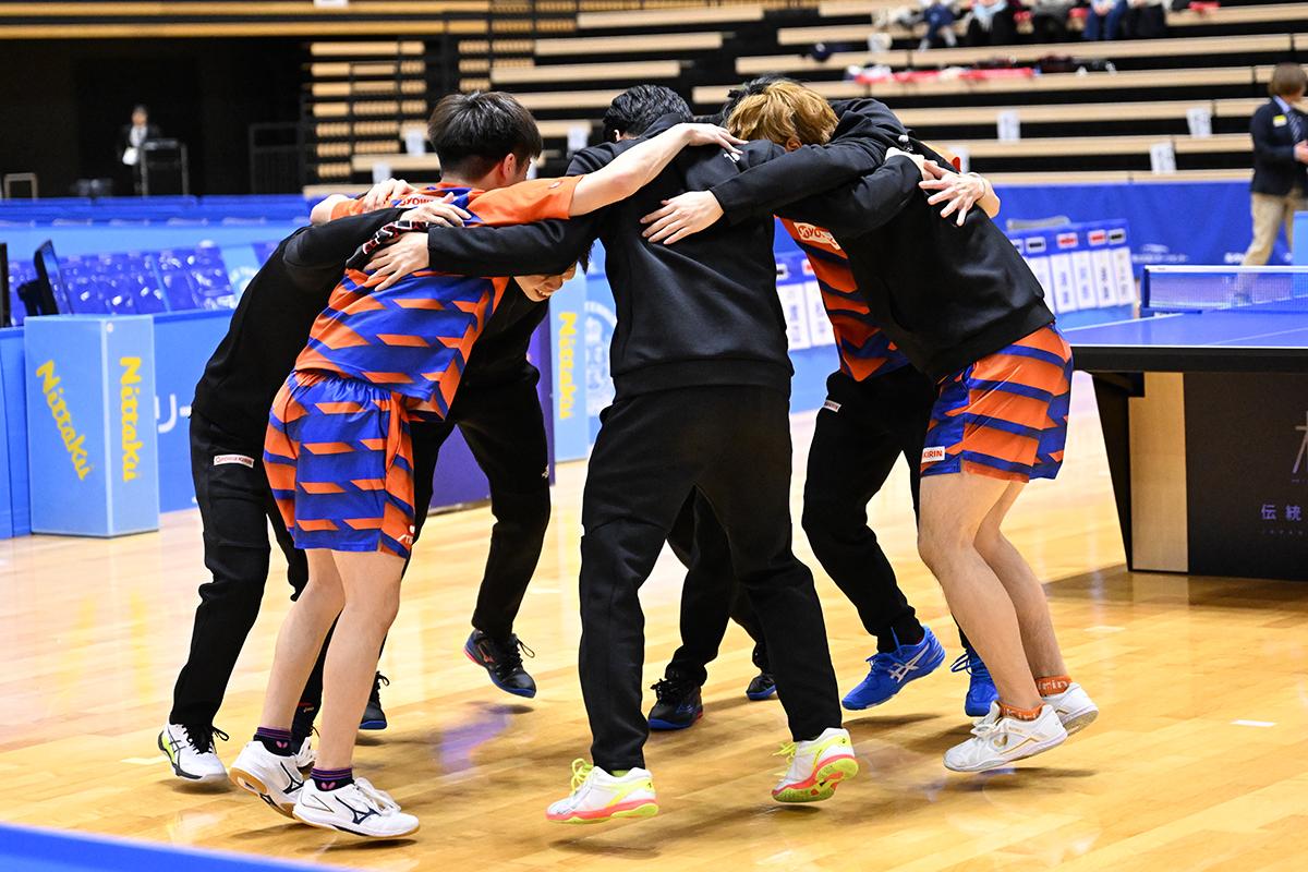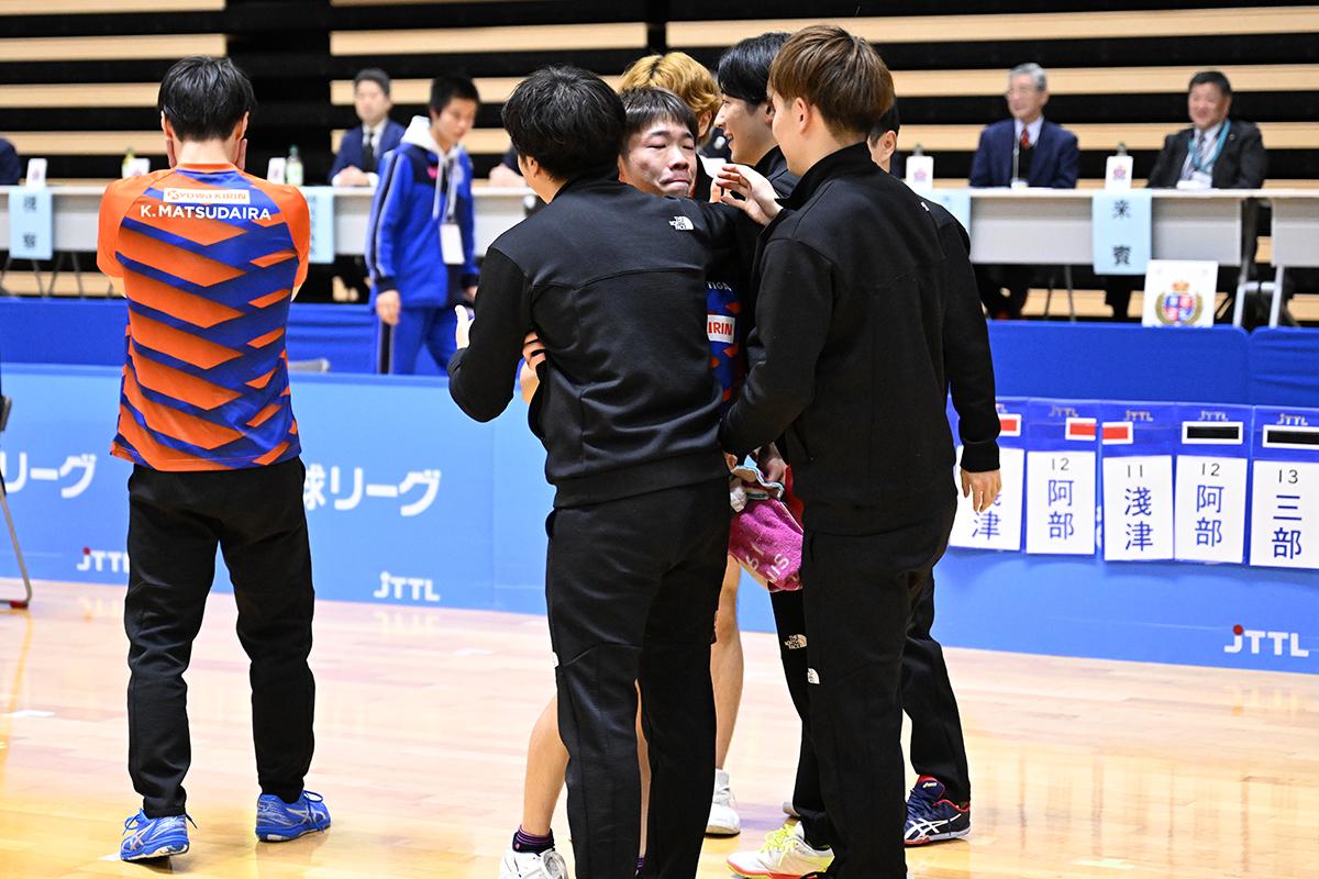 優勝は長かったですね。戦力は充実しているけど、勝てないことがこの1年間ずっと続いてたので。実業団も全日本団体も優勝できる力はあったと思うんですけど、やっぱり1点を勝ち切るところが僕らには全然足りてないというのを毎回感じていました。それで、後期大会が終わってから3週間あったので、その中で少し深く掘ったミーティングをして今大会に臨みました。みんなの練習量の差が出た良い試合だったと思います。僕らは、ほぼフルタイムで練習をやらせてもらっている環境で、ほかの実業団チームはそこまでできていないところが多いと思うので、僕らならではの良いところをやっと生かせたと思います。