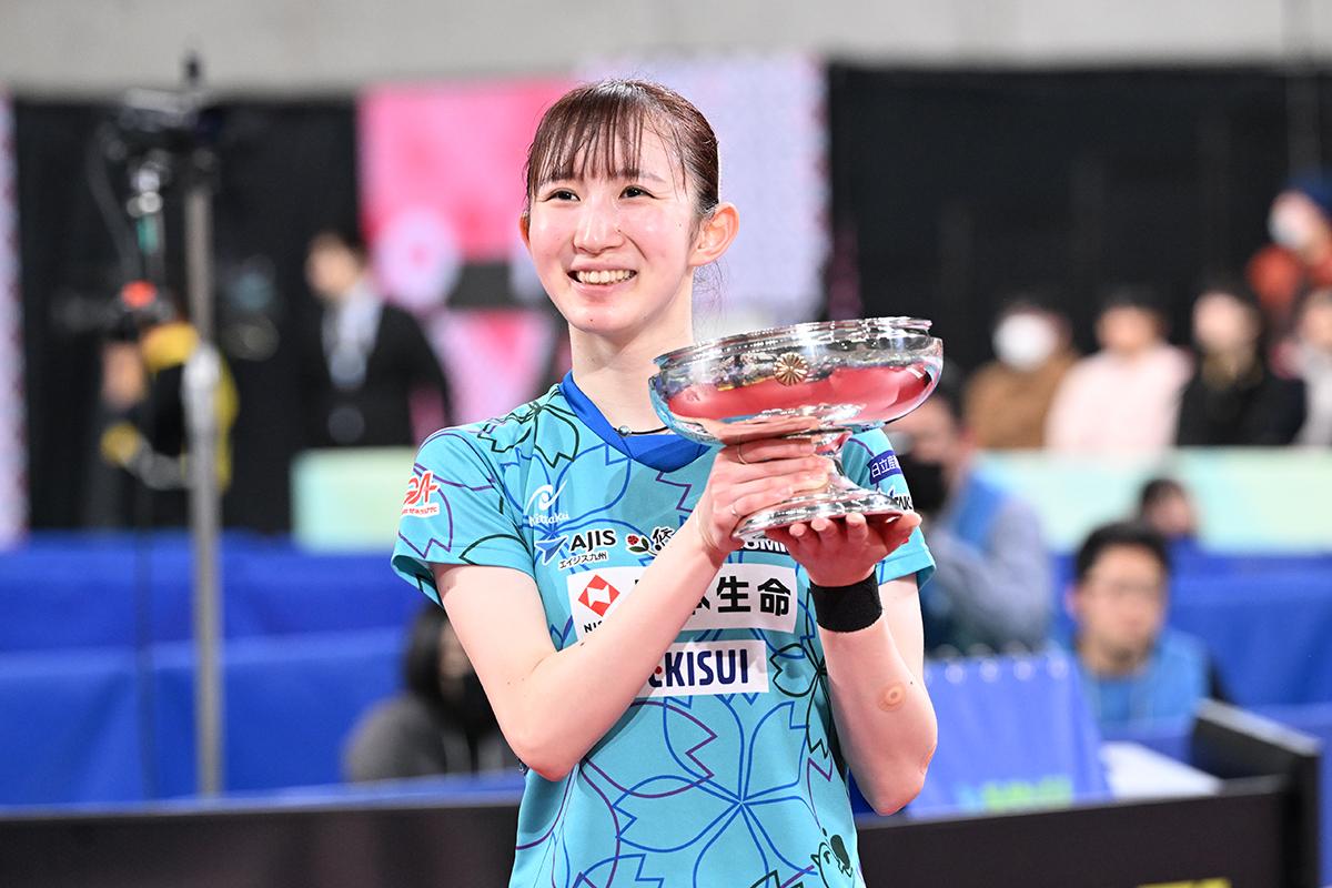 早田に迫る一番手は、木原美悠(木下グループ)。WTTスターコンテンダー ドーハでは早田を下した陳熠に持ち前の速攻で打ち勝って決勝へ進み、勢いがある。全日本では過去2度決勝へ勝ち進むも頂点に届かなかった木原にとって、目指すは優勝しかないだろう。まずは準々決勝まで勝ち上がって早田越えを果たしたい。