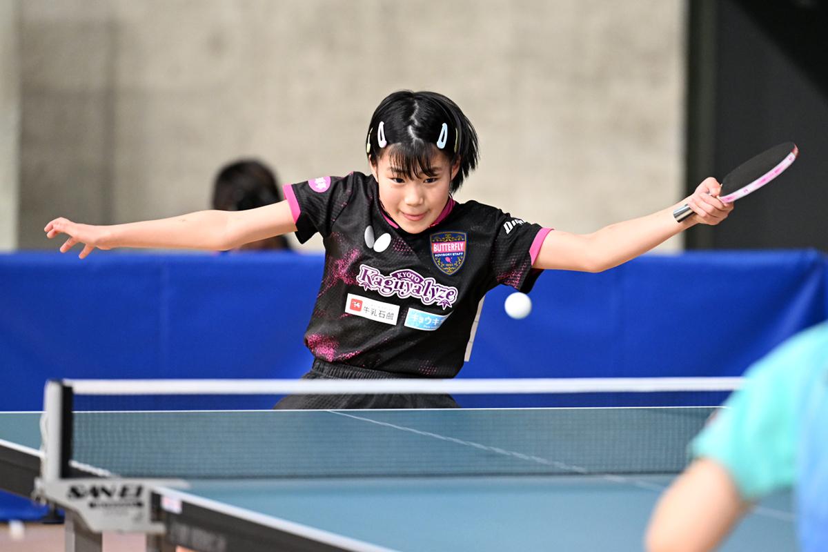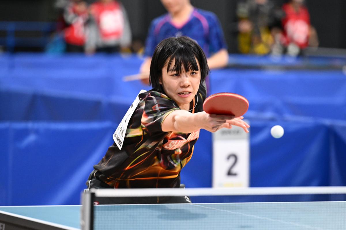 2023年インターハイ優勝の青木咲智(四天王寺高)と、一昨年のジュニア女子2位の小塩悠菜(JOCエリートアカデミー/星槎)の対戦はゲームオールまでもつれたが、小塩の速攻を両ハンドでよくしのいだ青木が勝利し、4回戦へ駒を進めた。4回戦では、日本リーグで活躍する井絢乃(中国電力ライシス)と対戦する。