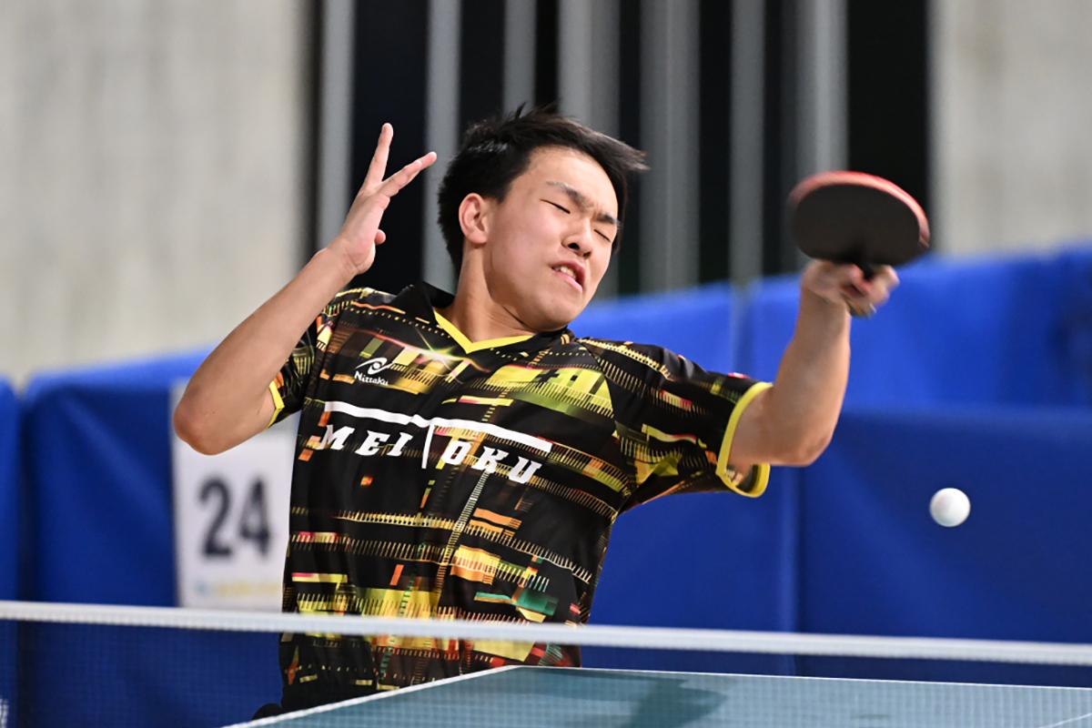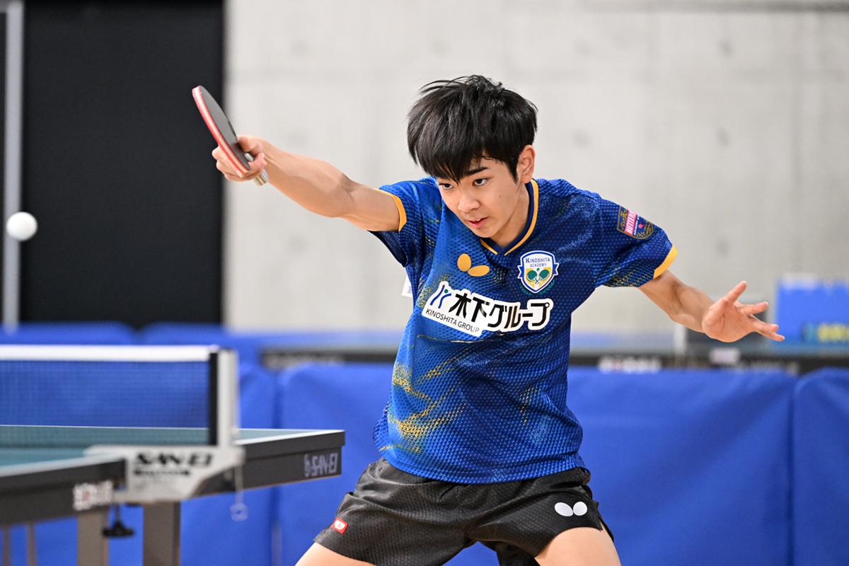 全中優勝の川上流星(木下アカデミー)は初戦となる2回戦で松浪啓太(函館大谷高)と対戦。初戦で硬さが見られたことに加え、松浪のミスの少ないプレーにゲームオールまで詰め寄られたが、最後は質の高い両ハンドで振り切った。