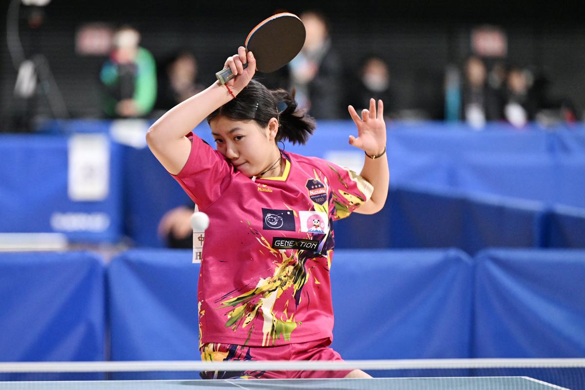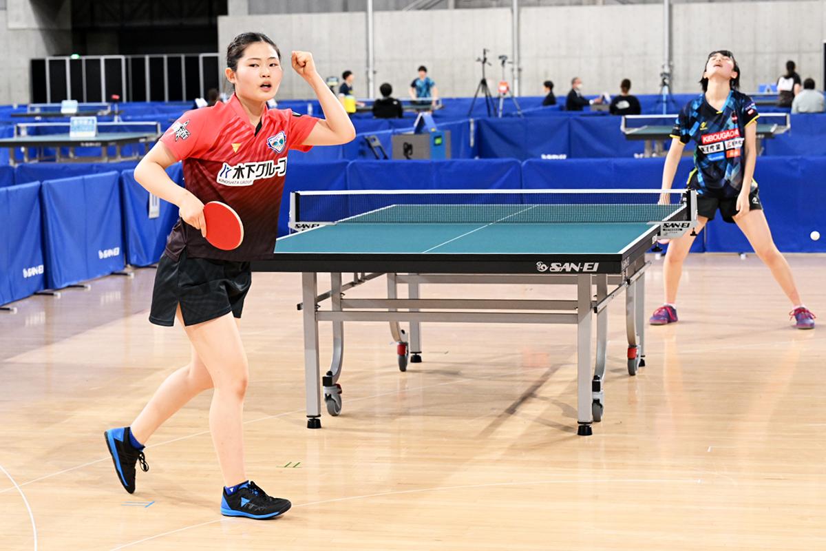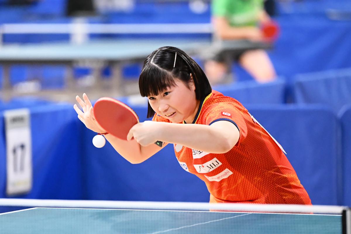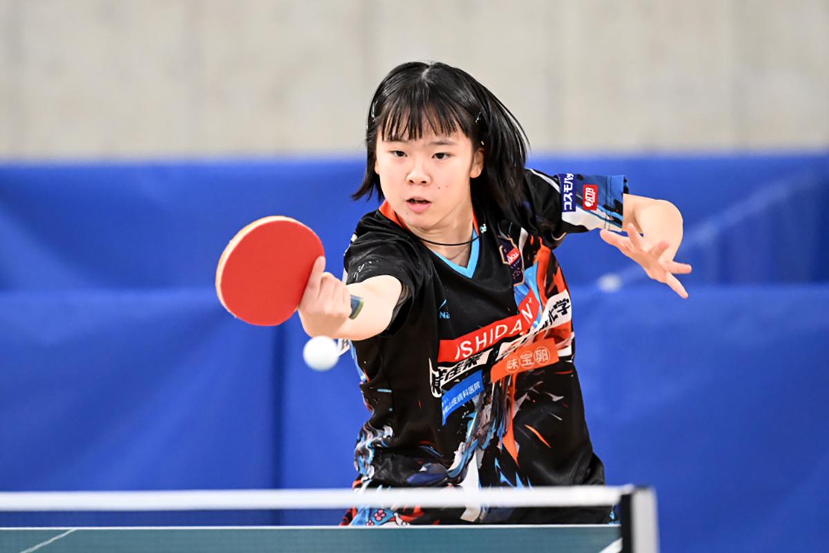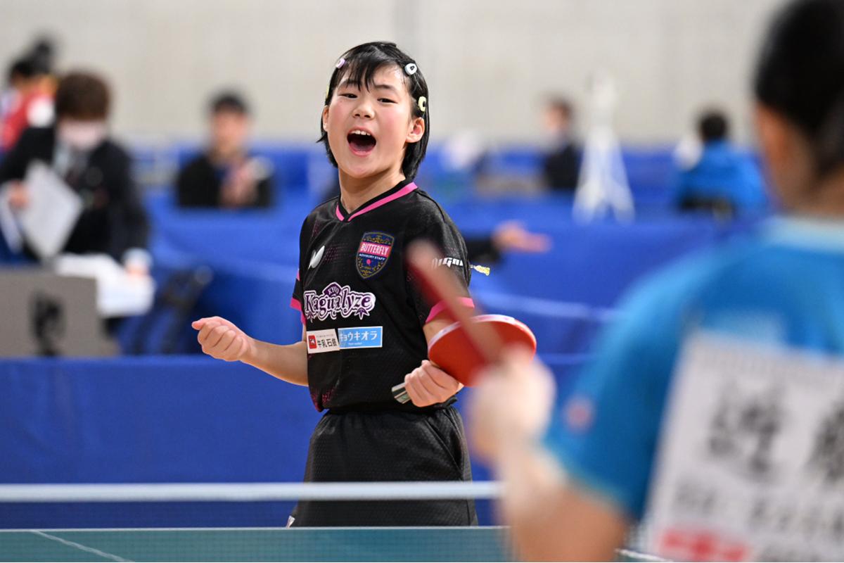 14歳以下カデット4強の石田心美(石田卓球N⁺)は、10歳の木方菜々美(T.T彩たま)の挑戦をはねのけ、3回戦へ。