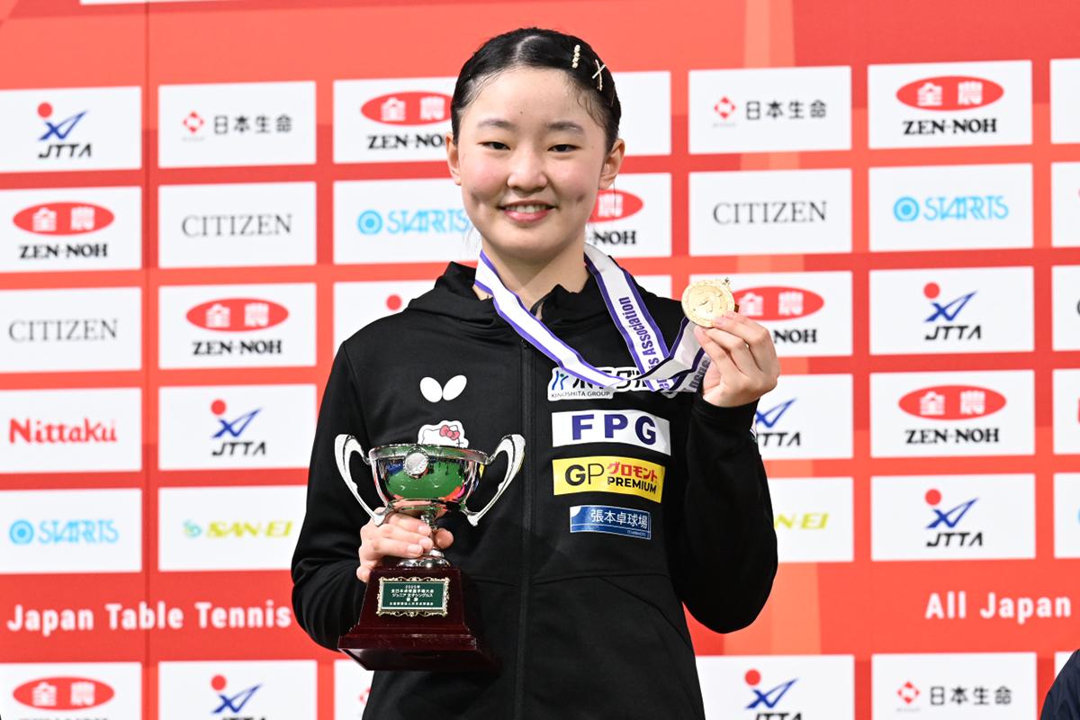 優勝はならなかったが、切れ味の鋭さとパワーが増した両ハンドで張本を追い詰め、俊英ひしめくジュニア女子で大きな存在感を放った。