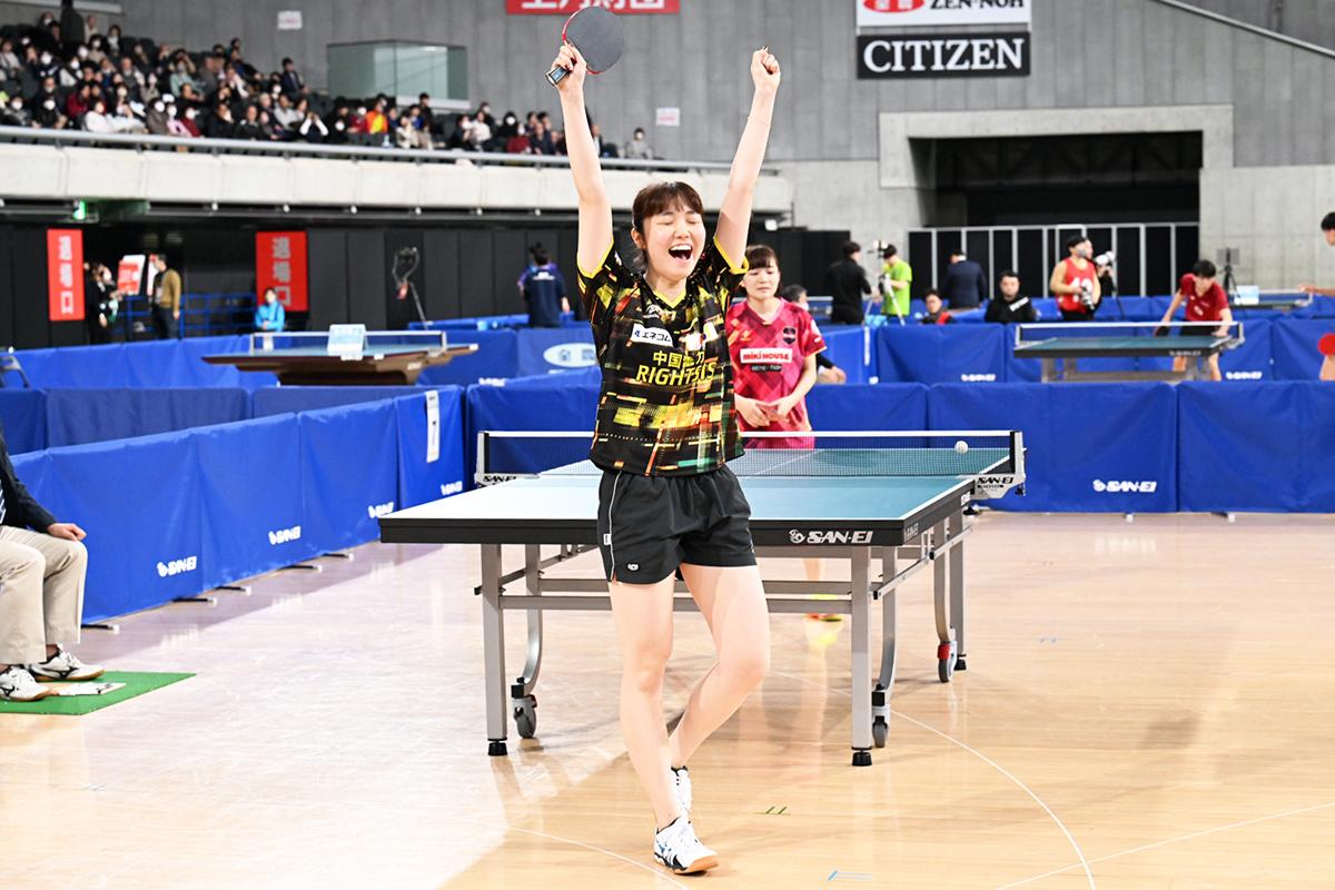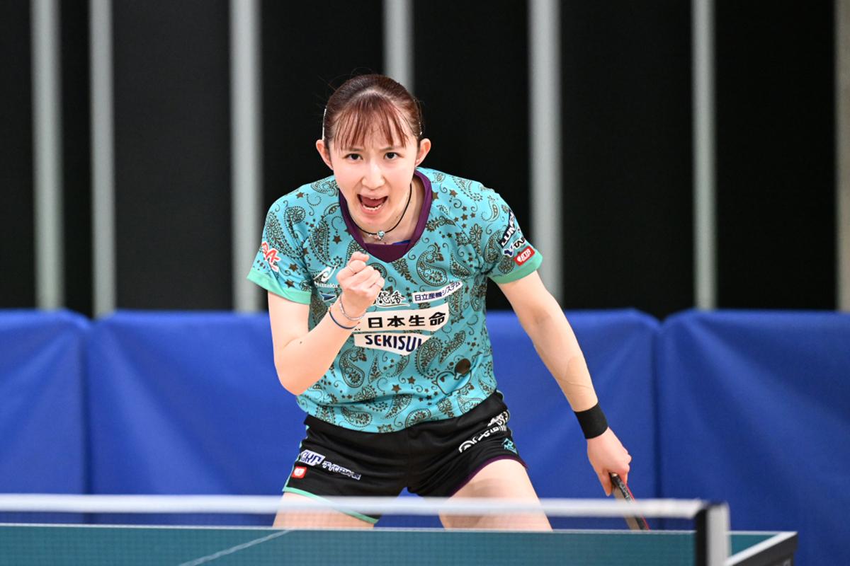 安藤みなみ(トップおとめピンポンズ名古屋)10,-3,9,-10,7,4 赤江夏星(日本生命)