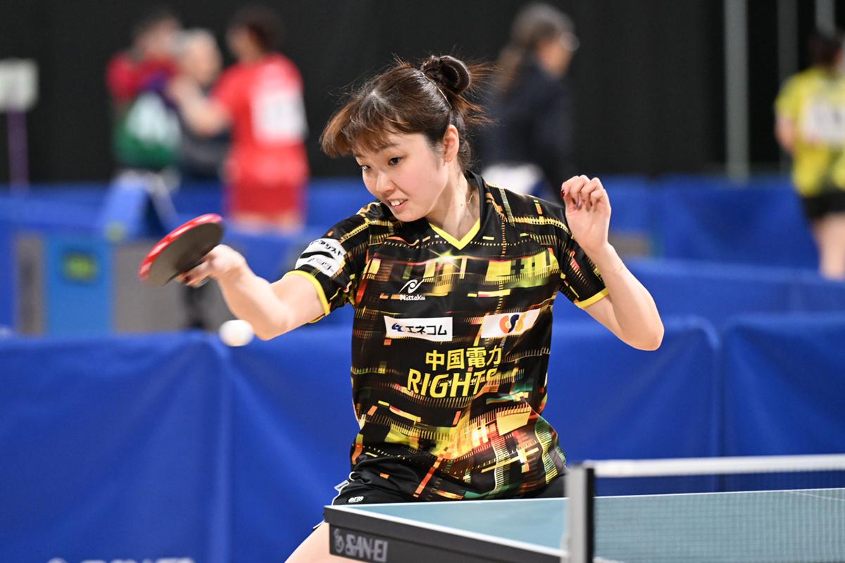 芝田沙季(ミキハウス)は安定感抜群の両ハンドで、5回戦で出澤杏佳(専修大)の変化速攻に完璧に対応すると、6回戦では木原美悠(木下グループ)との大接戦を勝ち切り、ベスト8に勝ち残った。