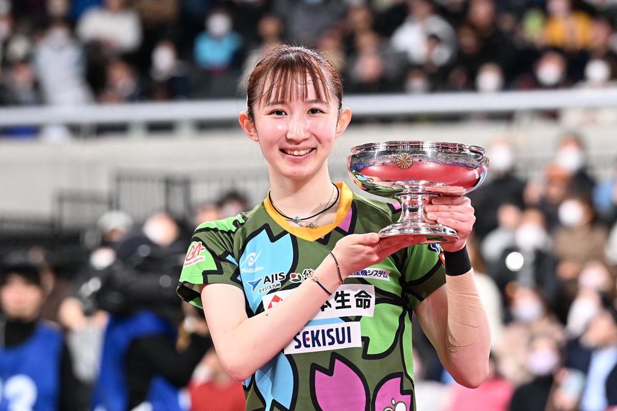 2年連続となった早田ひな(日本生命)対張本美和(木下グループ)の決勝は、昨年同様、またしても早田がストレート勝ちを収め、2014年から2016年にかけて石川佳純さんが達成して以来となる三連覇を果たした。