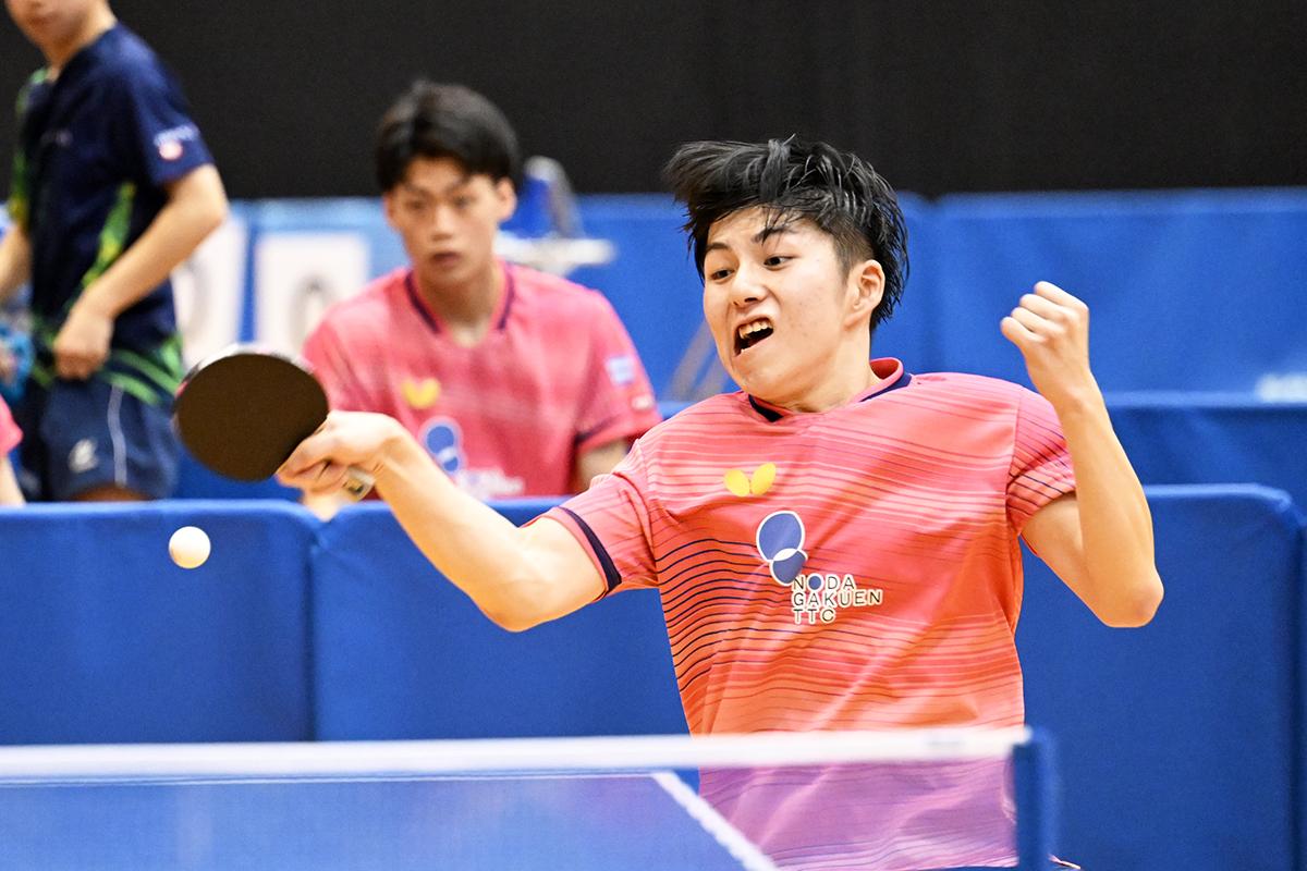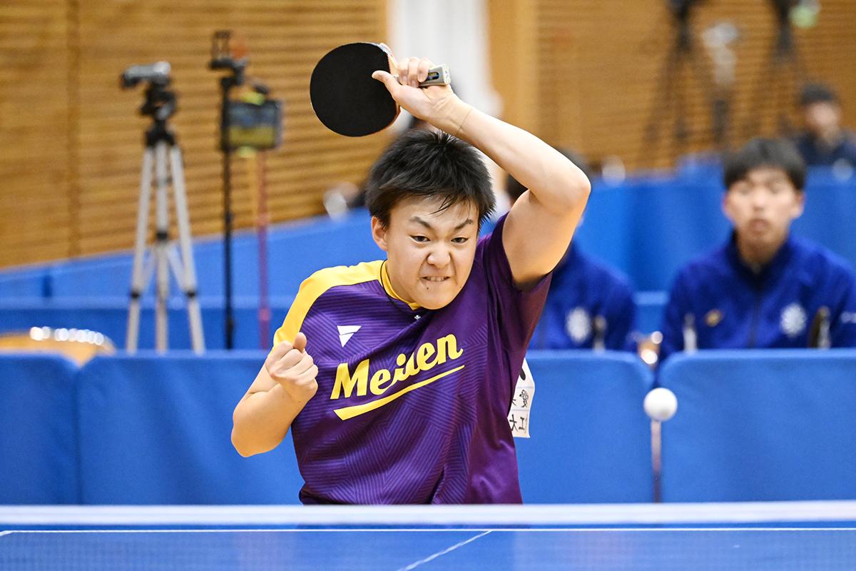 3年ぶりの優勝を目指す高校卓球界の盟主・愛工大名電は、育英エースの谷本に2点を奪われたが、それ以外は危なげない試合運びで勝利して4強入り。2点を奪われても動じないチーム力の高さを見せている。