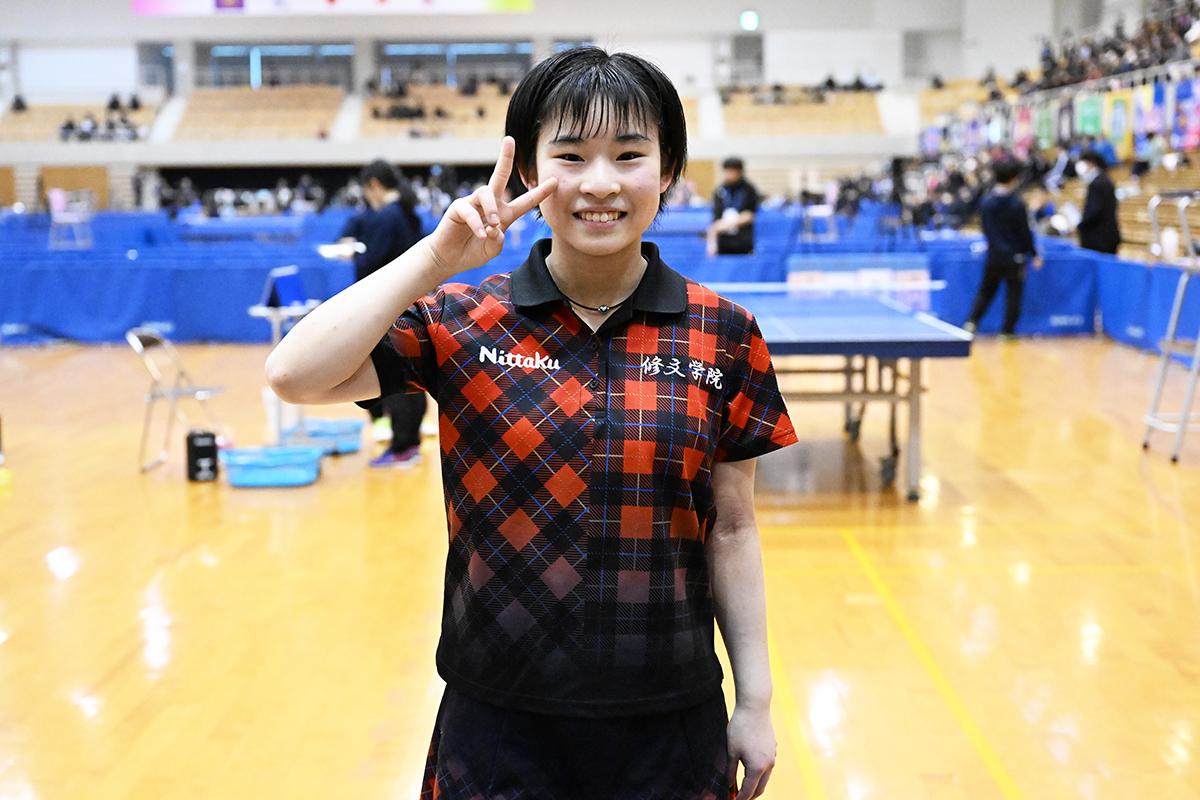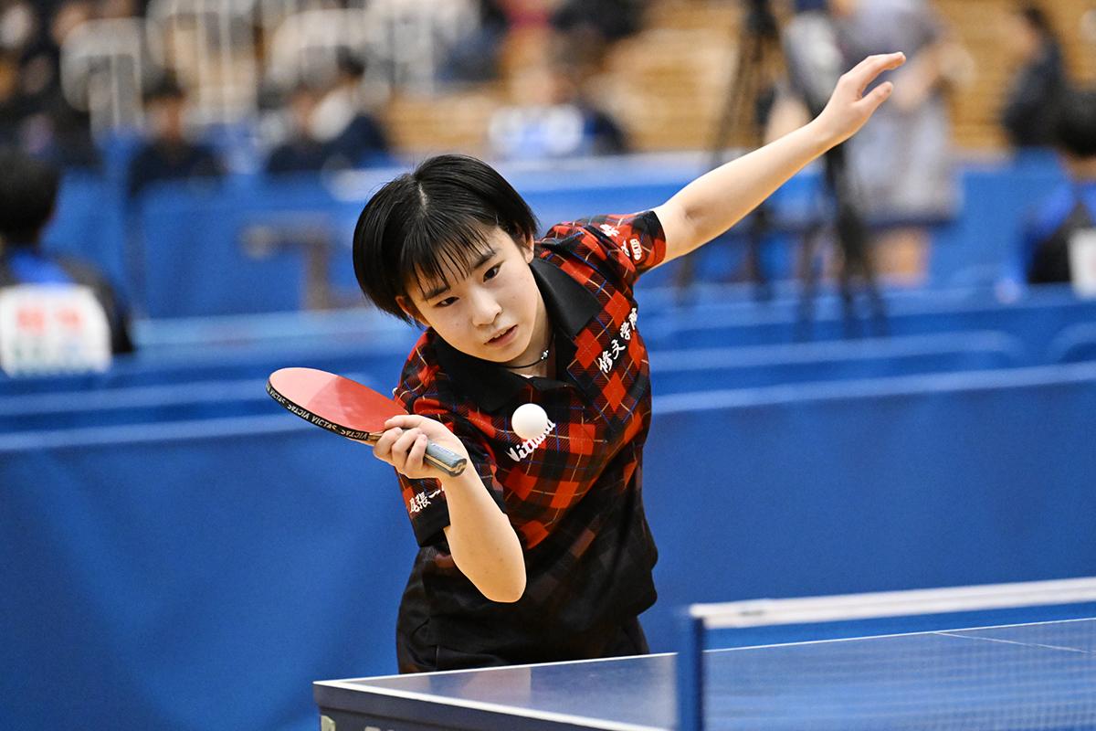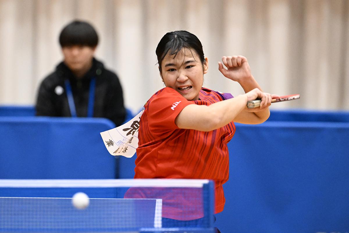 女子シングルスは、安定したカットで得点を重ねた長谷川が制した。ツッツキやカットの質の高さもさることながら、ゲームを重ねるごとに相手の攻撃を読む対応力も抜群で、余裕の感じられる試合運びで頂点へと駆け上がった。