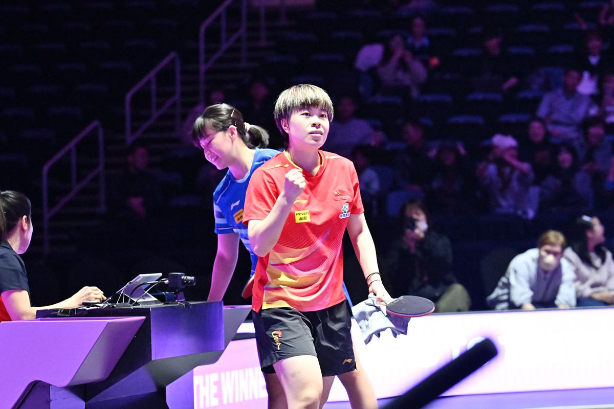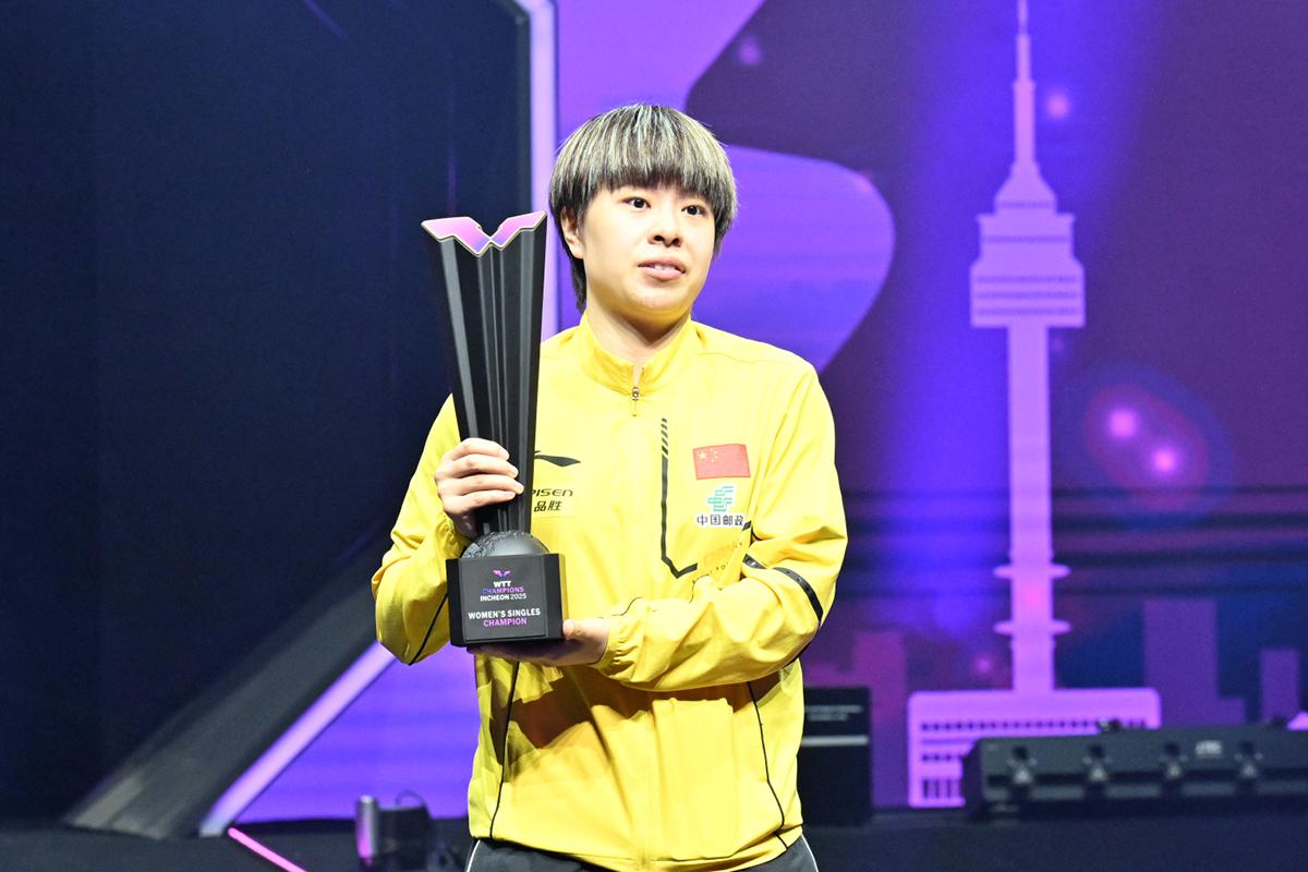 第7ゲームは、このまま逆転を許すわけにはいかない陳幸同がフォアハンドで3球目を放つなど積極的なプレーでペースを握り、10-6とチャンピオンシップポイントを握る。さすがに勝負あったかと思われたが、またしても王芸迪が蘇る。渾身(こんしん)のフォアハンドを放って10-10に追い付くと、ジュースでも強気のプレーを崩さずに2本連続で取り切って勝利。崖っぷちに追い込まれてから6本連取の離れ業で、大逆転優勝を果たした。