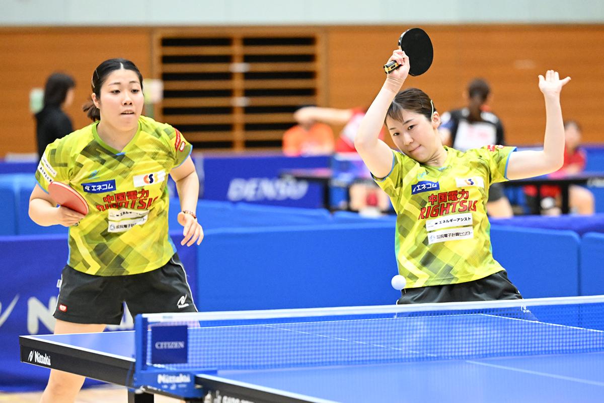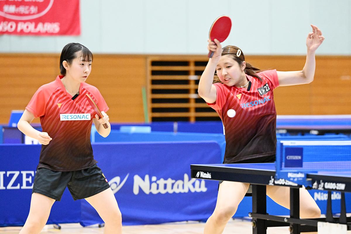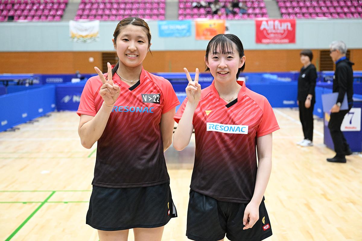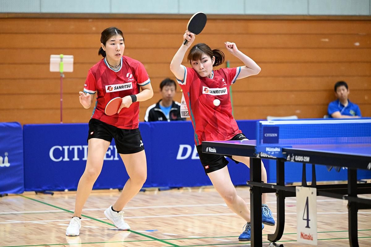 女子ダブルスは、出雲/出澤が優勝を果たした。互いに変化速攻を武器にするペアは、出雲が変化ブロックでチャンスをつくって出澤が決めれば、出澤がチャンスメイクして出雲が叩く見事な連係で勝ち上がると、決勝で野村/橋本と対戦。野村の変化速攻と橋本のカットの連係に第1ゲームを奪われるが、第2ゲーム以降はじっくりつないで好機を待つ粘り強いプレーで3ゲームを連取し、頂点をつかんだ。