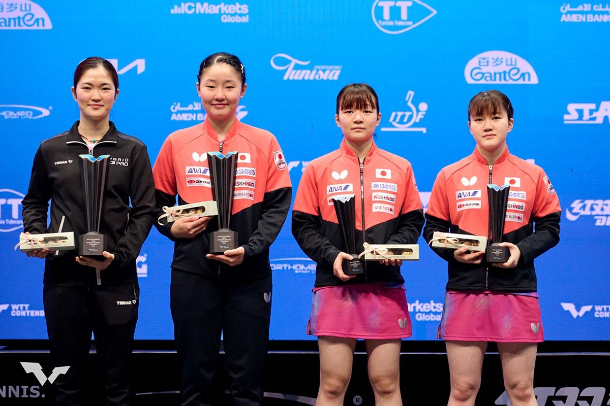 WTTコンテンダー チュニスが2025年4月22〜27日にチュニス(チュニジア)で開催された。男子シングルスはF.ルブラン(フランス)が優勝。篠塚大登は3位に入った。女子シングルスは優勝が張本美和、準優勝が早田ひな、3位が大藤沙月と横井咲桜で、日本がベスト4を独占。張本美和は木原美悠との女子ダブルスでも優勝を遂げた。