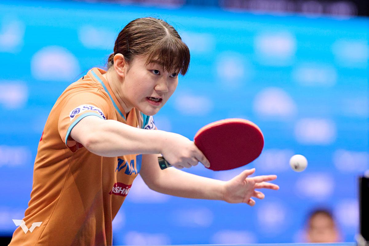 早田ひな(日本) -5,5,5,3 横井咲桜(日本)