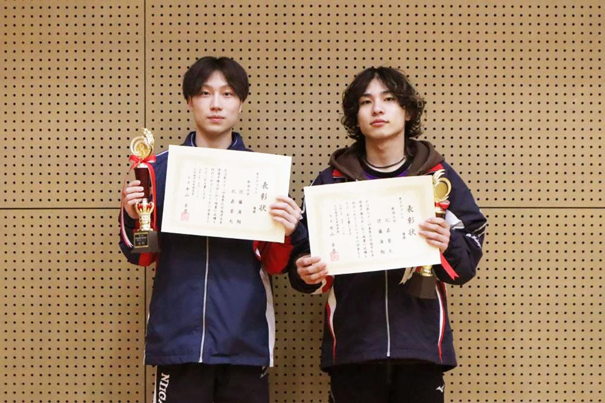 まずは、優勝することができてすごくうれしいです。私はダブルスで優勝したのが1年生の新人戦ぶりだったので、今回優勝に導いてくれたパートナーの西牧にとても感謝しています。1日目の団体戦で負けてしまった不安もあったのですが、2日目の個人戦のダブルスでは切り替えて2人でたくさん話し合って、最後まで楽しく試合することができました。また次の大会に向けて頑張っていきたいと思います。応援してくださった方々、ありがとうございました。(須藤)