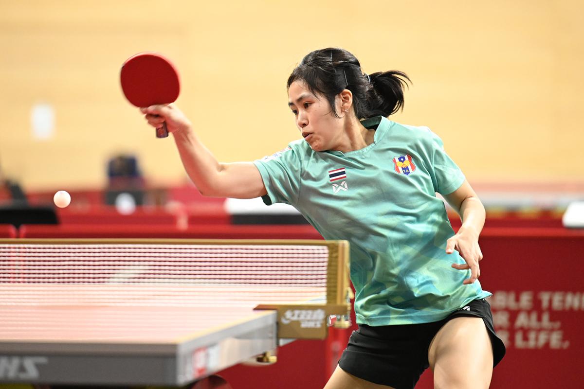 Tリーグでも活躍したS.サウェッタブート(タイ)は、アクラ(インド)の変化プレーに第1ゲームを奪われるが、第2ゲーム以降は緩急を使った見事な対応力で4ゲームを連取し、難敵を下して2回戦進出。
