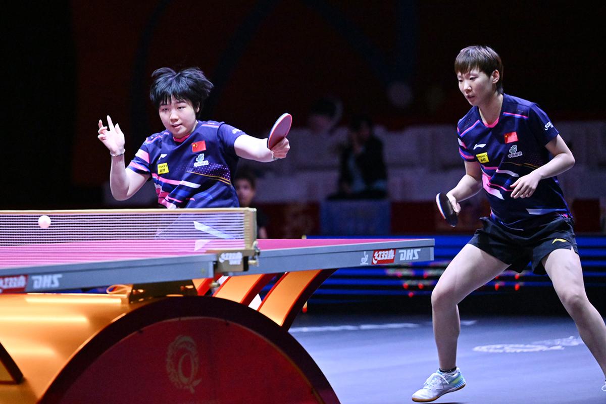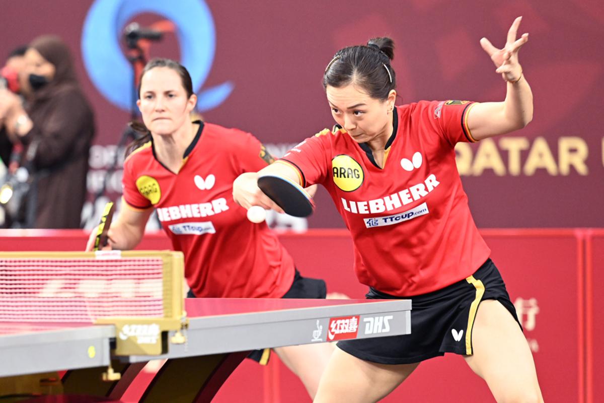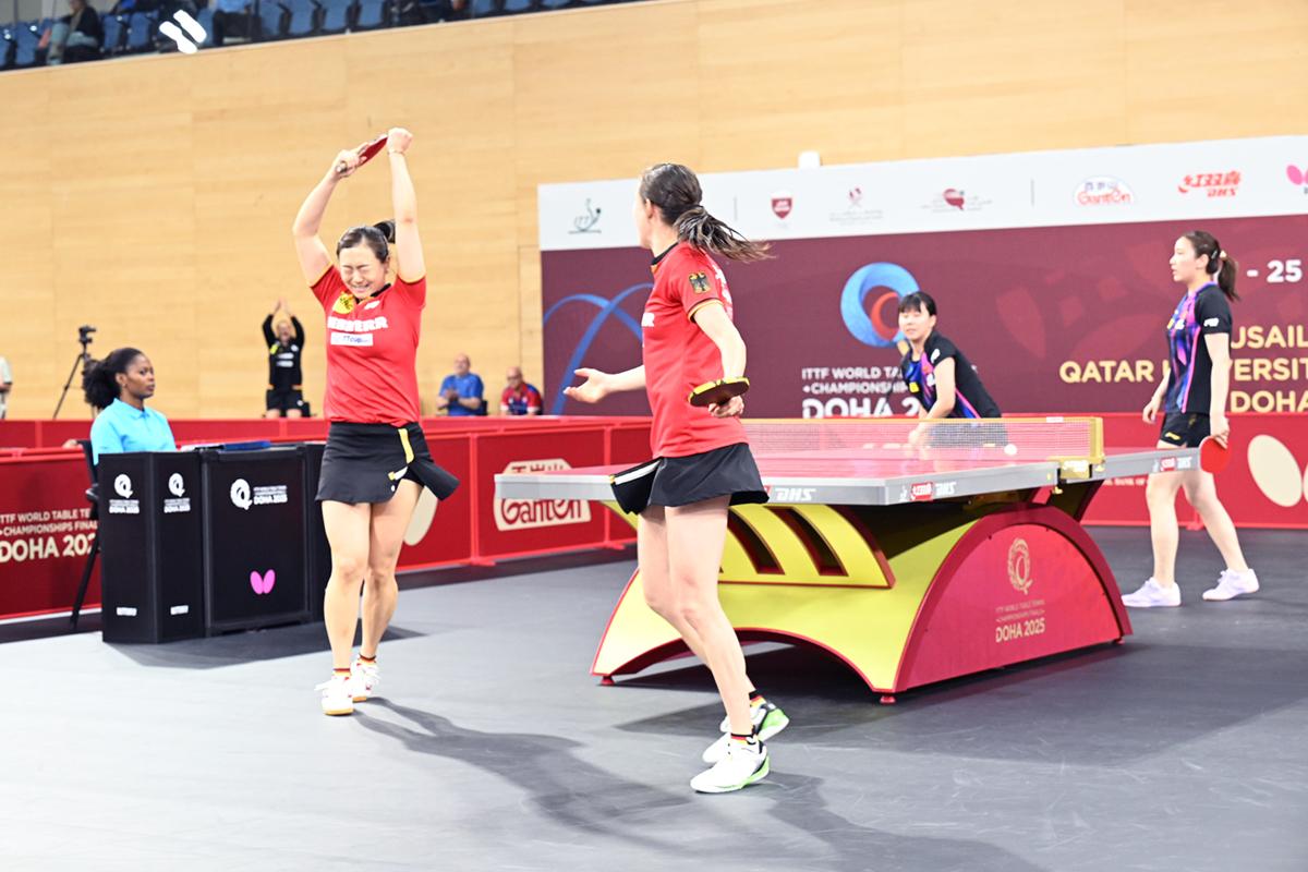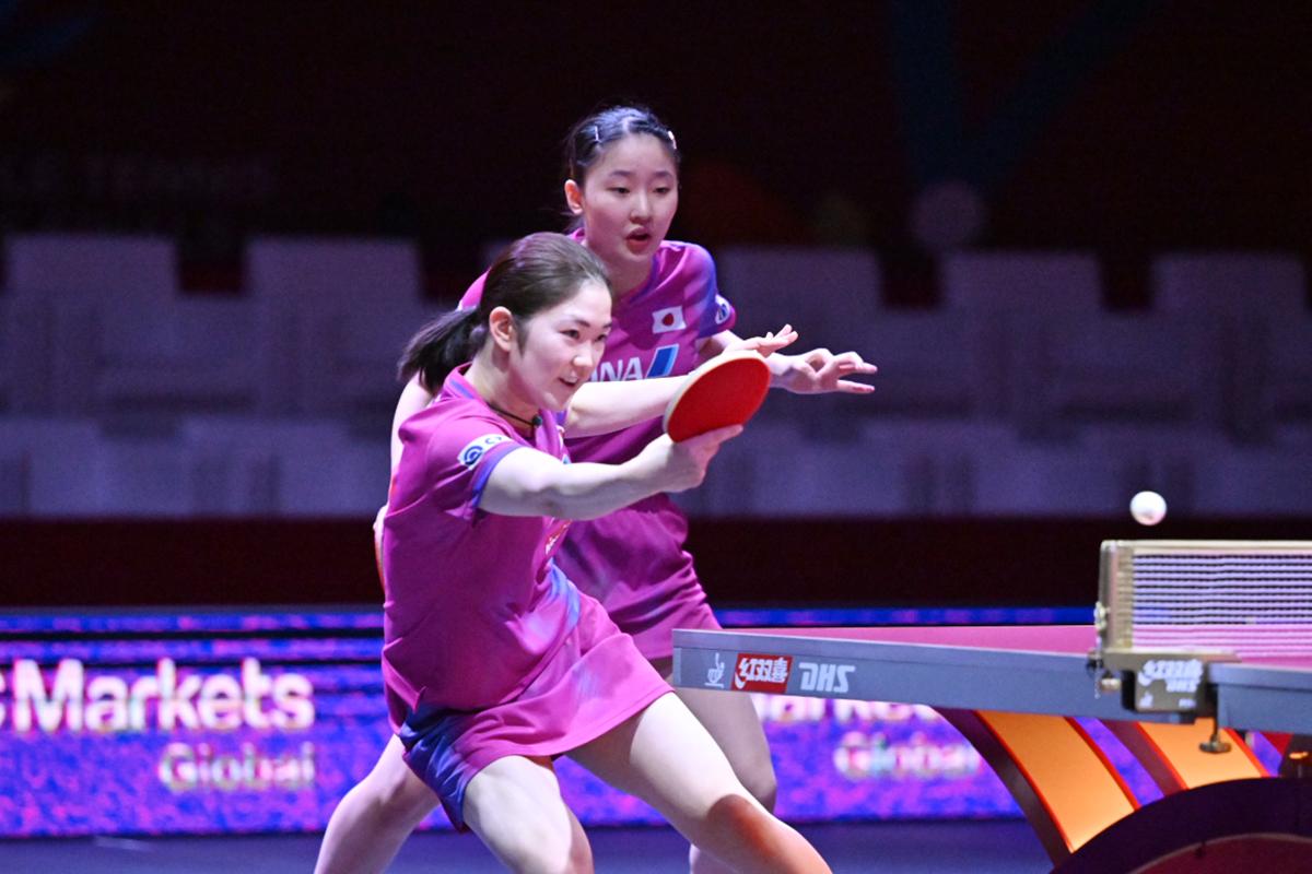 張本美和/木原美悠は、力のあるユアン・ジアナン/パバド(フランス)と対戦。左腕パバドのパワフルな両ハンドドライブからのユアン・ジアナンの速攻に押され、第1ゲームはジュースを繰り返す接戦になったが、ここを物にすると、第2ゲーム以降は張本の力強い両ハンドと木原の快速速攻で得点を重ね、終わってみれば快勝で3回戦進出を決めた。