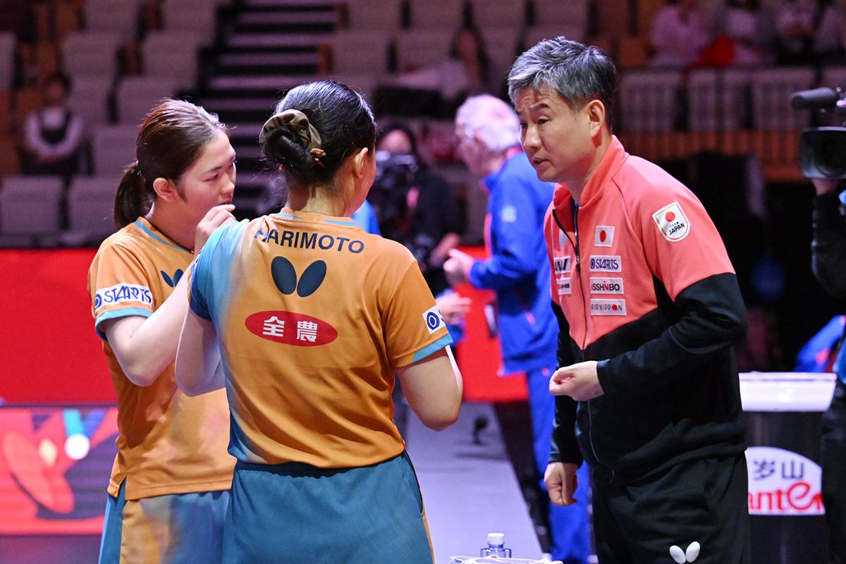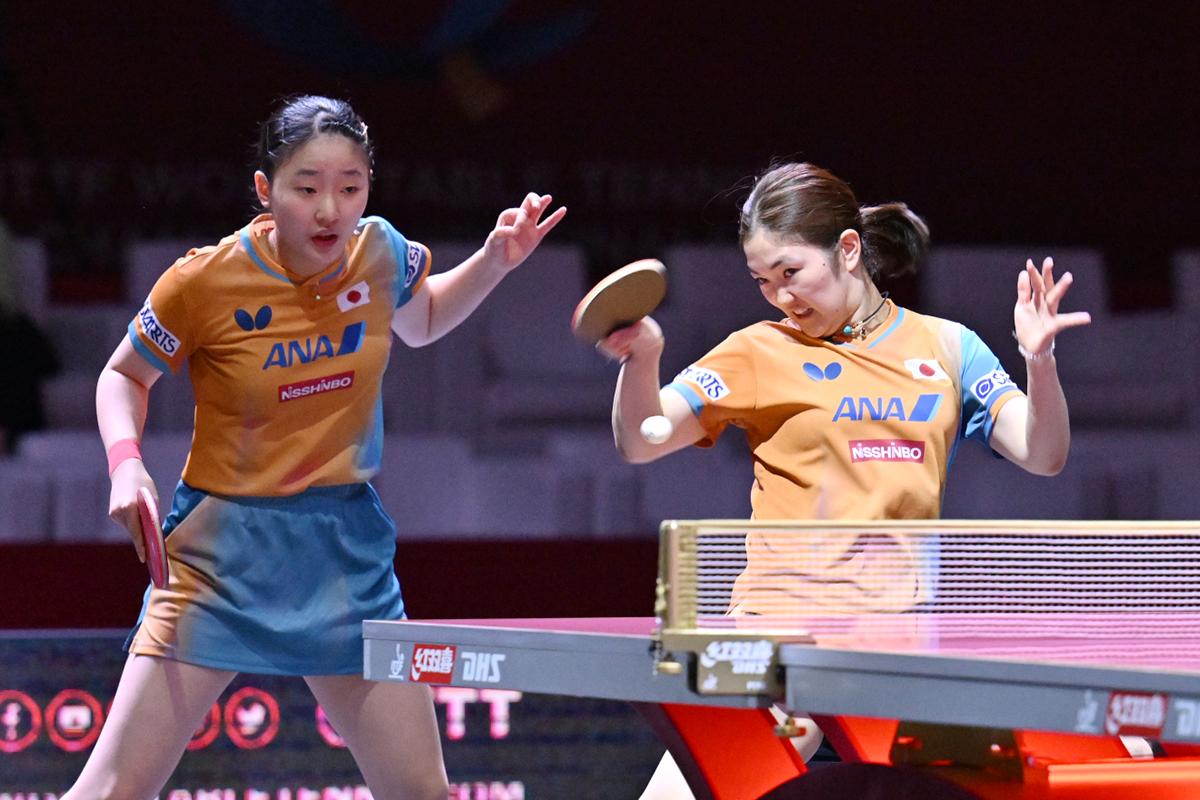 張本美和/木原美悠は、ドライブ攻撃型のチターレとバック面ツブ高ラバーの異質型のゴールパデーに対して、決定力の高い攻撃を仕掛けてストレートで快勝し、危なげなくベスト8進出。準々決勝では、メダルを懸けて金娜英/李恩慧(韓国)と対戦する。