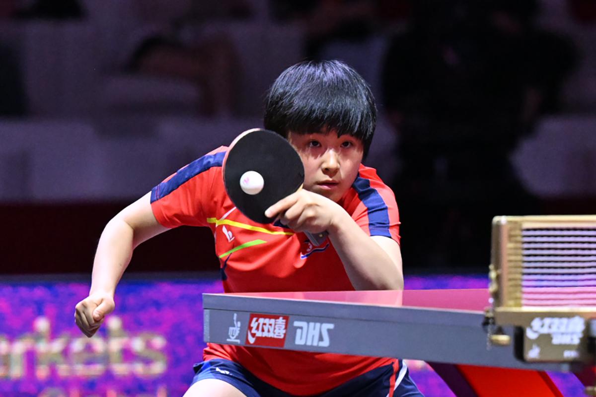 張本美和は、昨年のアジア選手権大会決勝で敗れているキム・クムヨン(北朝鮮)に対して、十分な準備を感じさせる丁寧なプレーで競り合いを制して大舞台でのリベンジに成功。3対1から追いつかれる苦しい展開も、最終ゲームは粘り強く相手のバック側にボールを集めてラストスパートを決め、キム・クムヨンを圧倒してベスト16に駒を進めた。