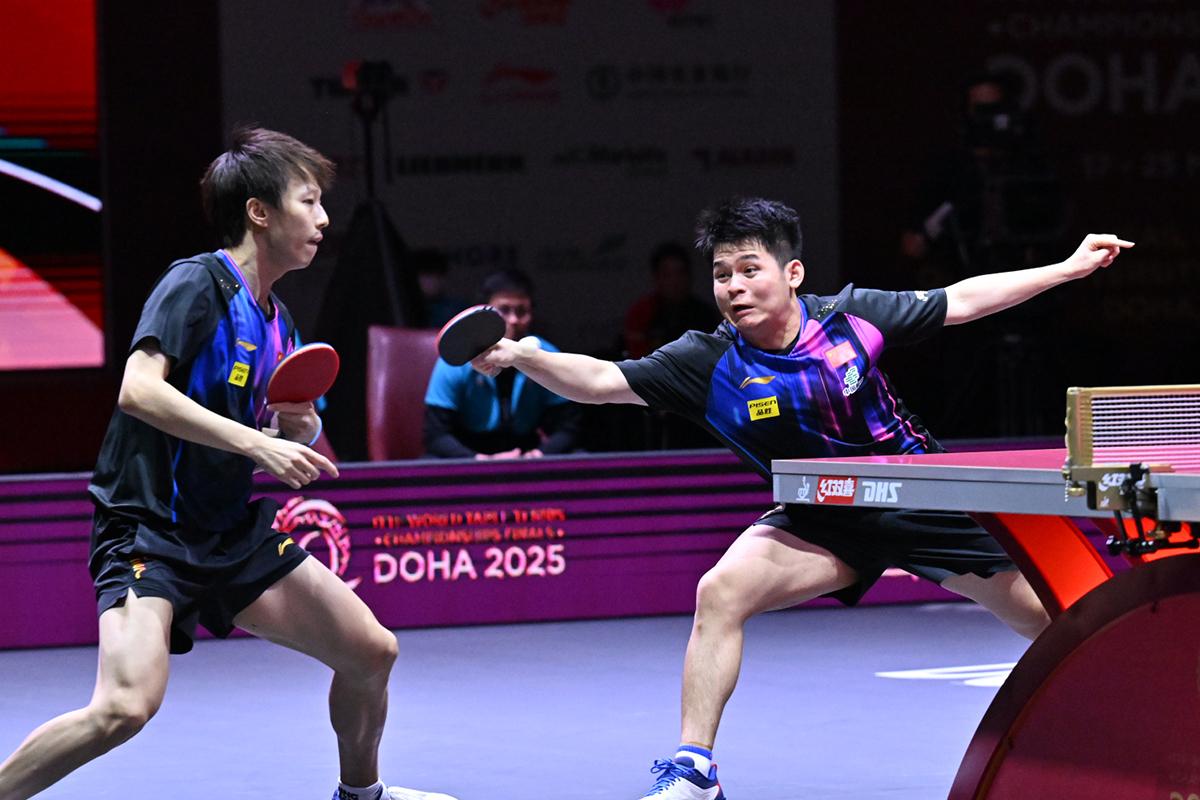高承睿/林昀儒(中華台北)が林高遠/林詩棟(中国)を下し、ベスト4入りを決めた。林昀儒が鋭い両ハンドで攻め、高承睿も林昀儒に負けじと厳しい攻めで、優勝候補の一角と目されていた林高遠/林詩棟を圧倒した。
