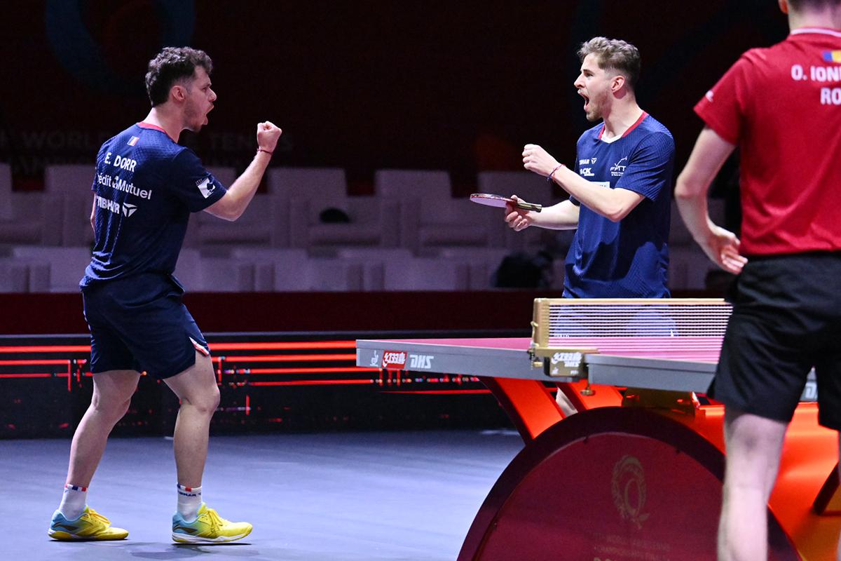 ブラソー/ドール(フランス) 対O.イオネスク/ロブレス(ルーマニア/スペイン)のヨーロッパ対決は、ラリー戦に強さを見せたブラソー/ドールが、2019年2位の実績を持ち、昨日の3回戦では張本智和/松島輝空を破ったO.イオネスク/ロブレスをゲームオールで振り切り、メダル獲得を決めた。