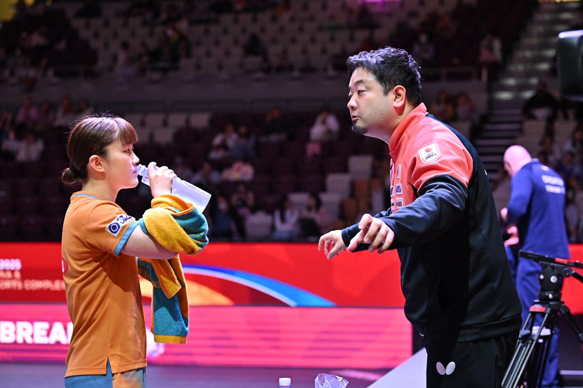 準々決勝では、2021年ヒューストンの同じステージで敗れている王芸迪(中国)と対戦する。「接戦になったら絶対に勝ち切りたい。まずは目の前の1点、1ゲームを積み重ねていきたい」と、今大会好調の変化速攻でリベンジを目指す。