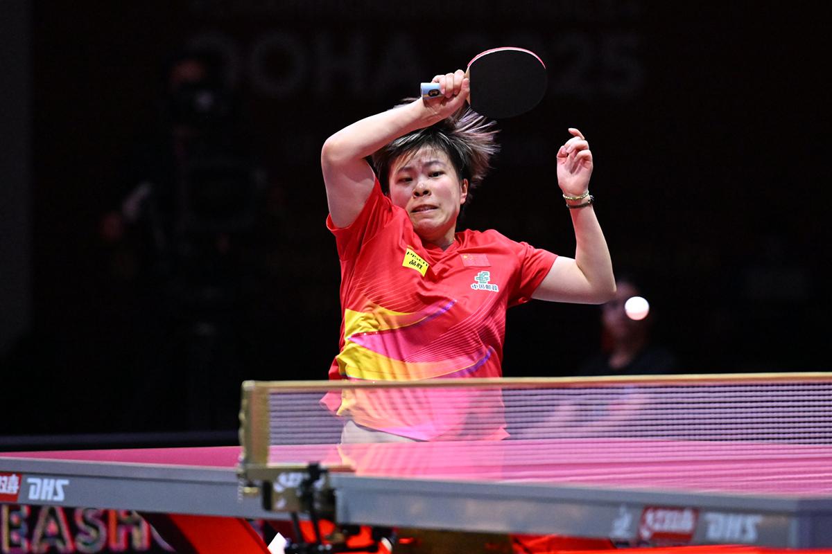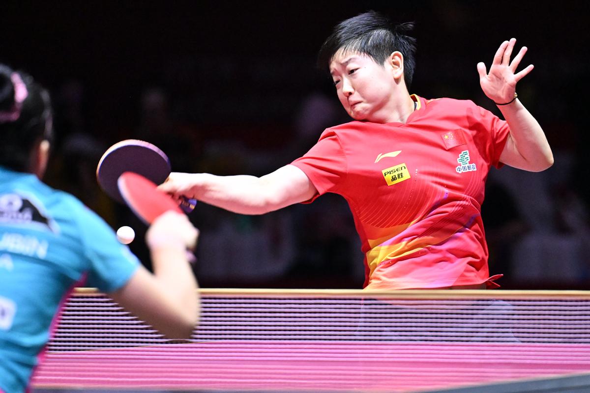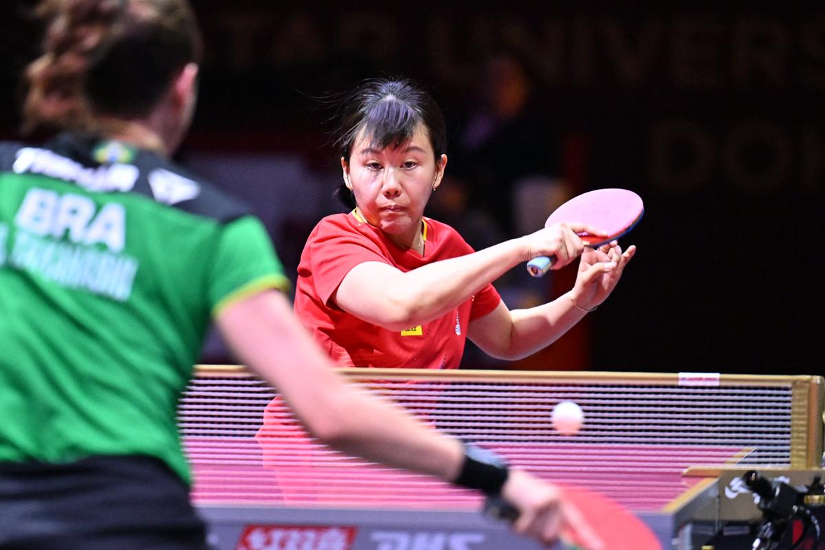 王芸迪(中国)はパバド(フランス)に完勝して、順当にベスト8入り。快速を生かした強打が持ち味のパバドを、鉄壁の両ハンドで寄せ付けなかった。